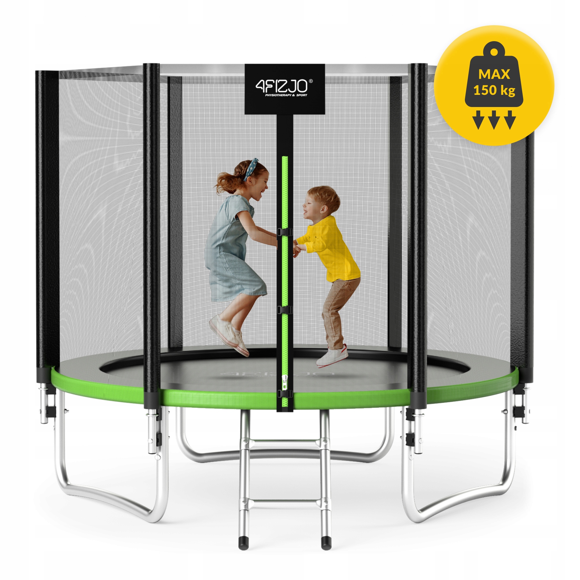 Батут 4FIZJO гарантує, що розвага буде не тільки захоплюючою, але й абсолютно безпечною. Зовнішня захисна сітка стійка до розтягування та розриву, тому дитина може безтурботно грати та стрибати. Садовий батут оснащений блискавкою і засувками безпеки. Сходи, що входять до комплекту, забезпечують безпечний вхід і вихід з батута.