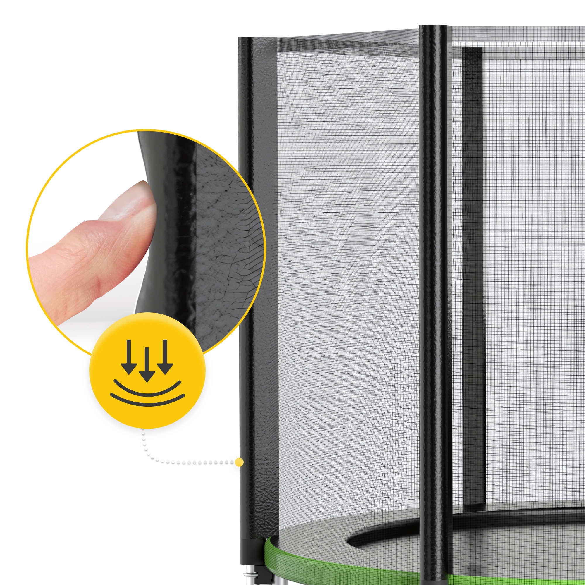 Велику довговічність забезпечує оцинкована сталева конструкція, стійки якої покриті товстим пінопластом і оцинковані пружини. Батут стійкий і стійкий до нахилу завдяки використанню «U»-подібних ніжок, які забезпечують рівномірний розподіл ваги.