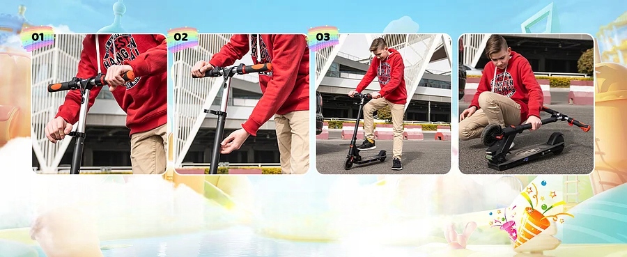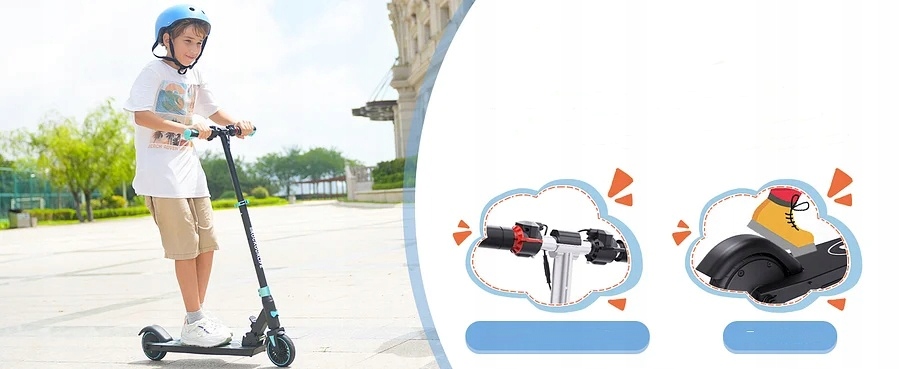 БЕЗПЕЧНА ЇЗДА: Дитячий електричний самокат використовує метод ковзання, що може запобігти ризику дітей через помилки в експлуатації під час користування самокатом. У вимкненому стані його також можна використовувати як звичайний неелектричний самокат. Світловідбиваючі наклейки на бампер, неслизьке кермо та подвійні гальма забезпечують безпеку користувача.