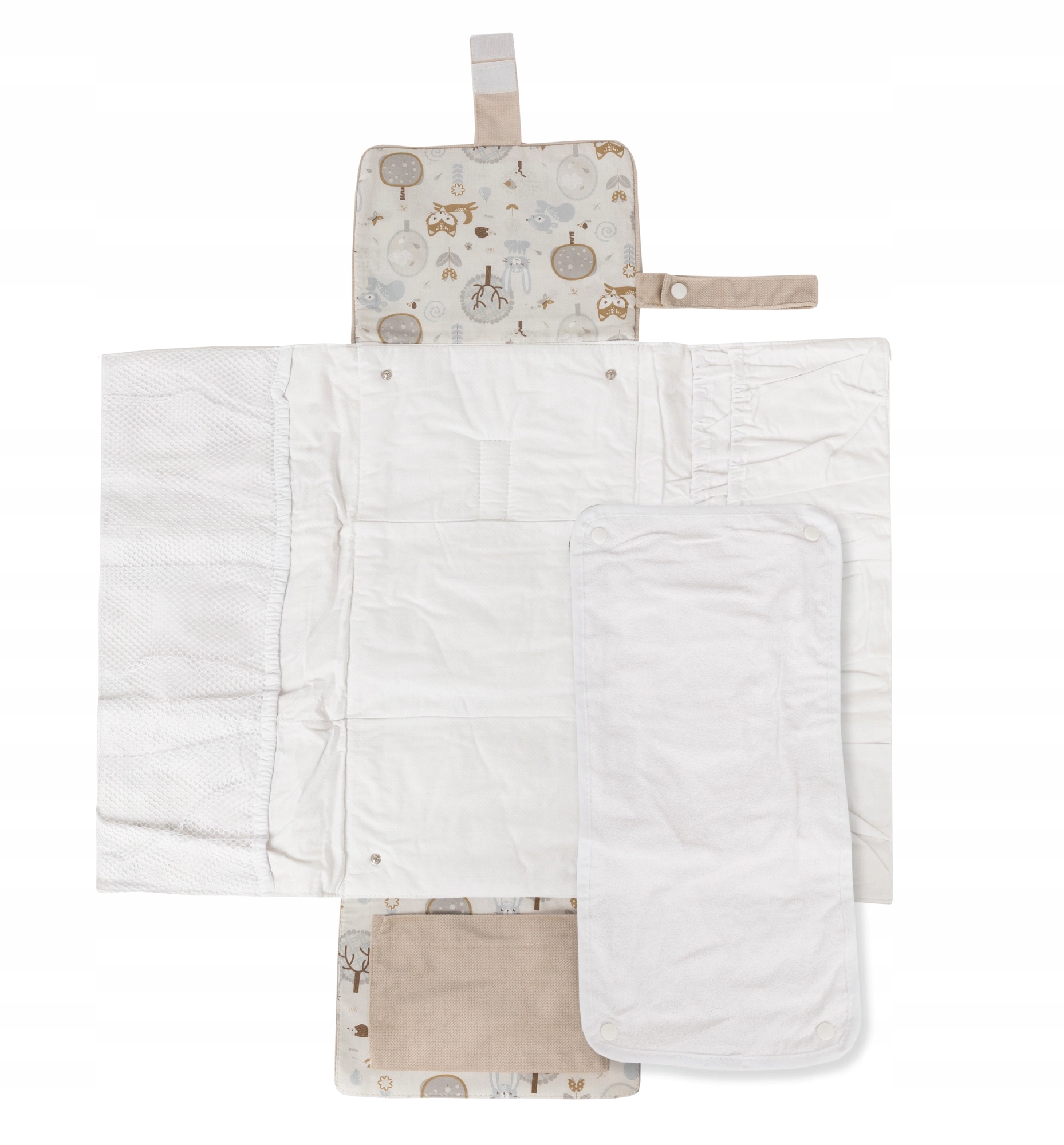 Відкрийте для себе наш портативний килимок для сповивання! Це практичне і зручне рішення дозволяє міняти підгузник малюкові в будь-яких умовах, як вдома або на прогулянці, так і під час подорожі. Килимок оснащений ремінцем, що дозволяє його зручно носити або кріпити до коляски, сумки або рюкзака. Крім того, килимок легкий, зручний і компактний, тому його можна помістити в будь-яку сумку, рюкзак або кошик коляски, а його дуже легко скласти. Усередині ви також знайдете багато відділень і кишень для необхідних речей, напр. підгузки, вологі серветки, крем, змінний одяг і т. д. Зовні також є велика кишеня на блискавці.