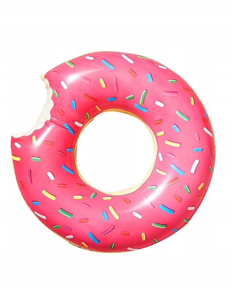 Барвистий надувник кільце у формі надкушеного пончика, виготовлене з високоякісного ПВХ-пластику, що гарантує довговічність.