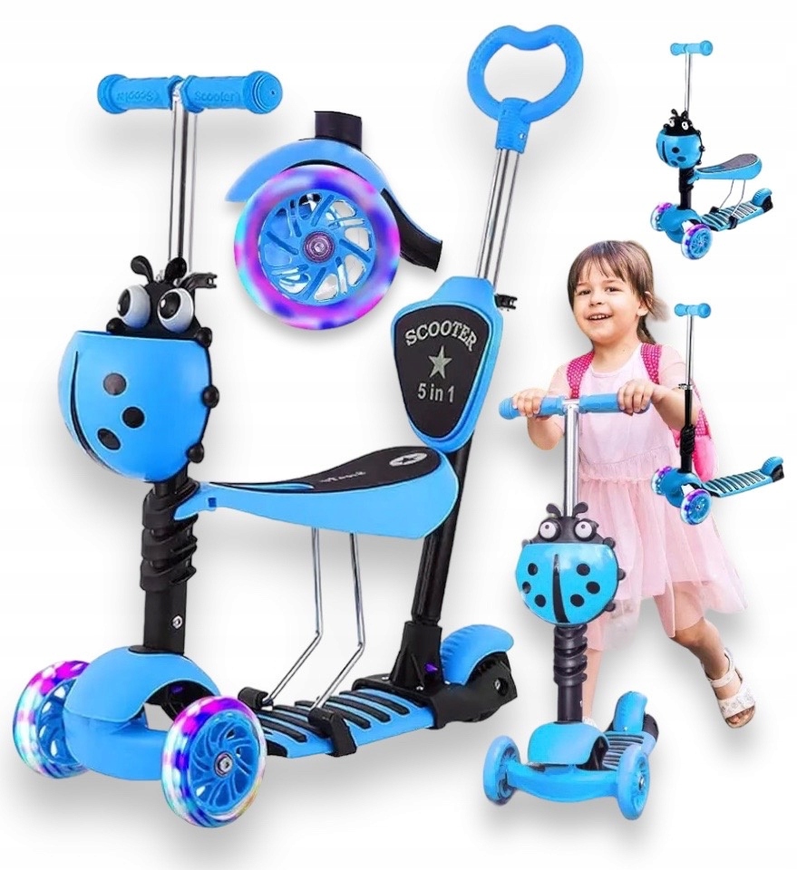 Самокат дитячий, триколісний, світлодіодні колеса, що світяться, для хлопчиків і дівчаток 5 в 1 - Самокат для штовханини, їздовий