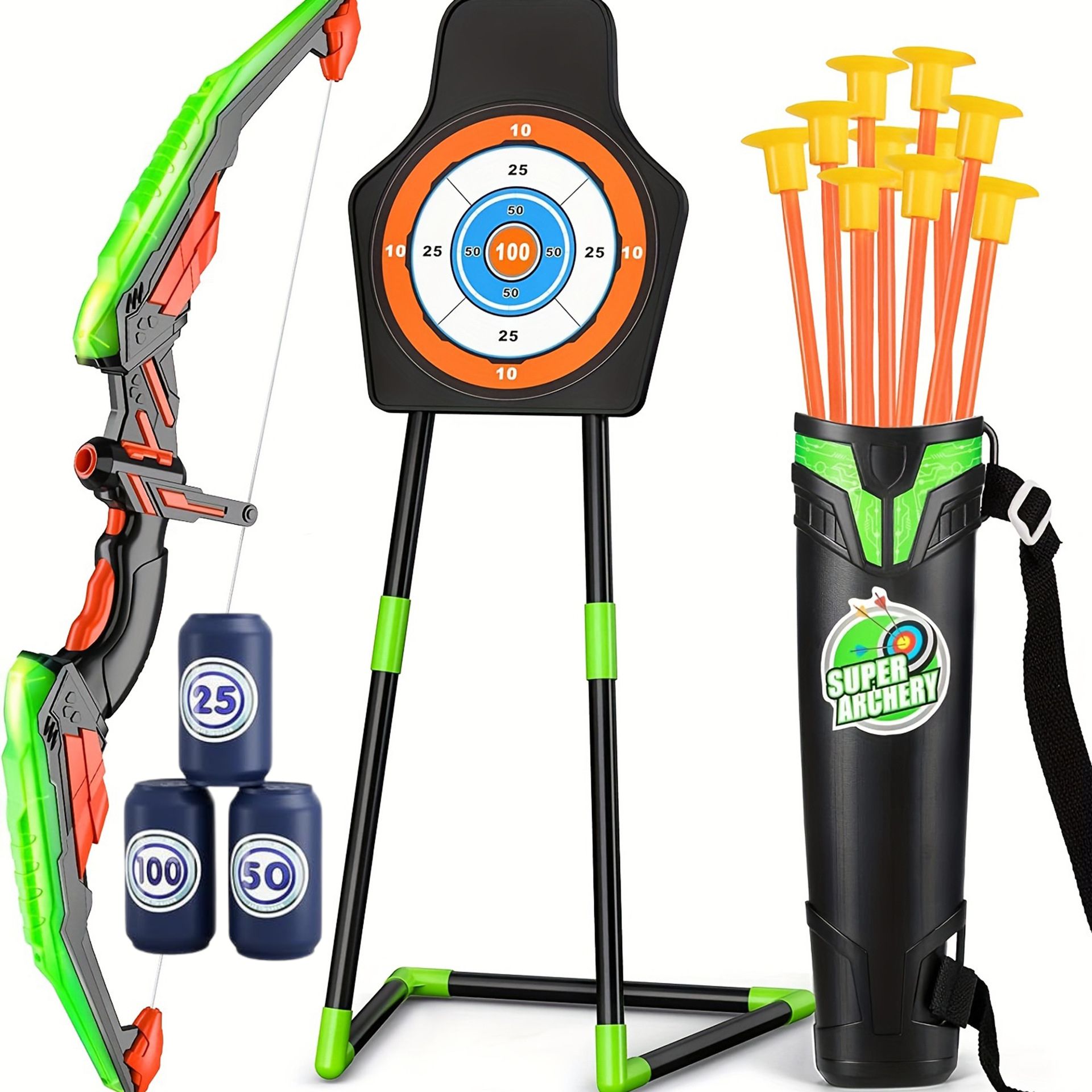Дитячий щит для лука. Набір для стрільби зі стріл. Набір світлодіодних сагайдаків