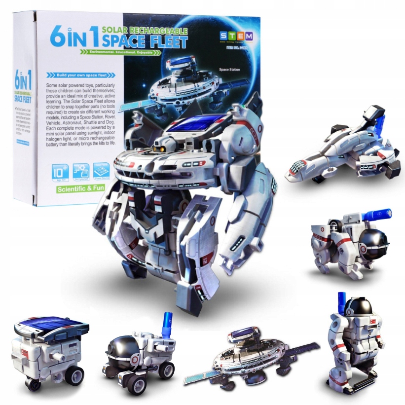 - Набір 6-в-1 Solar Space Fleet — це надзвичайно навчальна та захоплююча іграшка, яка дозволяє дітям самостійно зібрати аж шість різних космічних кораблів на сонячних батареях. Завдяки простій системі засувок збірка набору проста і не вимагає використання клею чи інструментів. Крім того, набір дозволяє навчитися використовувати сонячну енергію, що розвиває у дітей екологічну свідомість. У набір входить двигун, сонячна панель, мікробатарея, складальні деталі та графічна інструкція зі складання. Завдяки можливості заряджати транспортні засоби всього за 3 хвилини, діти можуть розважатися навіть у похмурі дні. Іграшка дозволяє будувати такі моделі, як космічна станція, космічний мех, астронавт, дослідницький апарат, космічний автомобіль і космічний човник. Це чудовий спосіб творчо провести час і розвинути ручну майстерність дітей. Розміри коробки приблизно 24 х 18 х 7 см. Відкрийте для себе космічний світ із сонячним космічним флотом 6-в-1!