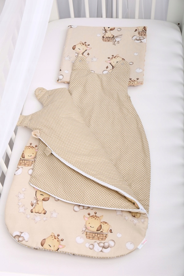візерунком : giraffe Zosia + горохом на бежевому фоні