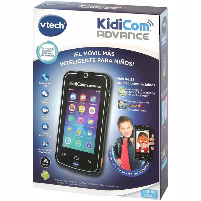 - Ваші діти можуть безпечно надсилати повідомлення (письмові, голосові, малюнки, смайли) своїм близьким через Wi-Fi без передплати KidiCom Advance також містить понад 2000 завантажуваних програм, розроблених спеціально для дітей віком від 6 до 12 років: читання , письмо, розвиток мови, вивчення та відкриття світу, художня та музична творчість, математика, пам’ять та вирішення проблем