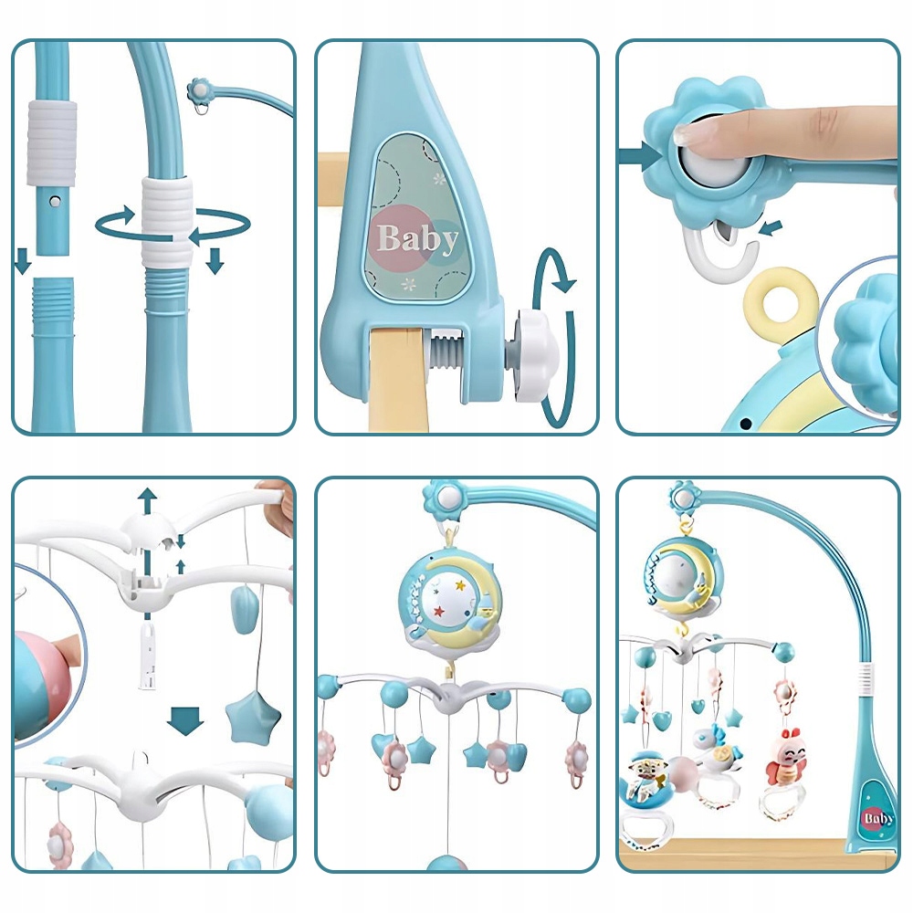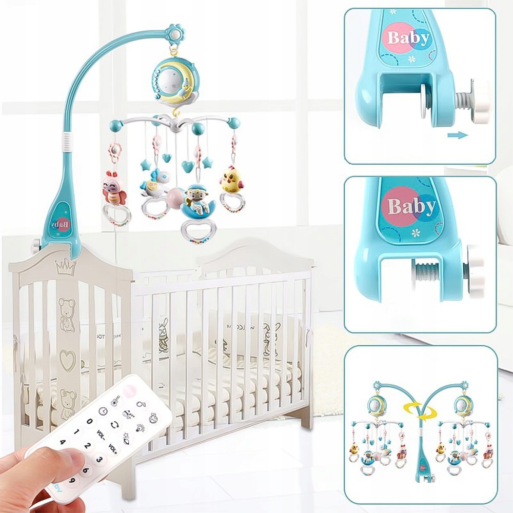 Карусель має шість кнопок, за допомогою яких можна перемикатися між функціями. Це дозволяє дітям виявити причинно-наслідковий зв'язок, пов'язаний з натисканням кнопок. Легко збирається. Підходить для ліжечка, коляски, люльки, автокрісла, люльки тощо.