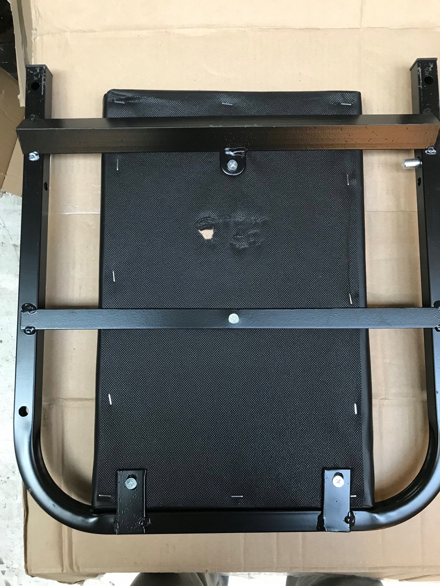 Візок має міцну трубчасту сталеву раму та покритий синтетичною шкірою.