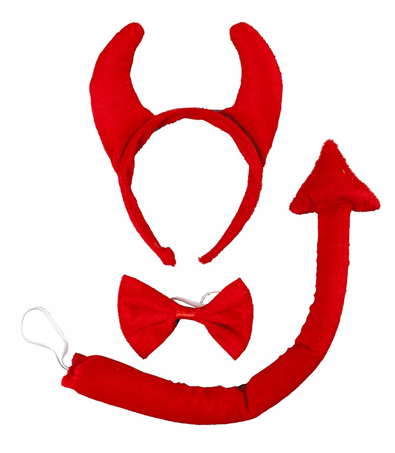 Набір диявола ідеально доповнить ваш костюм на Хелловін або дівич-вечір. У набір входять: ефектна пов'язка з рогами диявола, елегантний краватка-метелик і чуттєвий хвіст, які легко одягаються завдяки гнучким застібкам. Вся річ у інтенсивному червоному кольорі, що додає стилю трохи характеру.