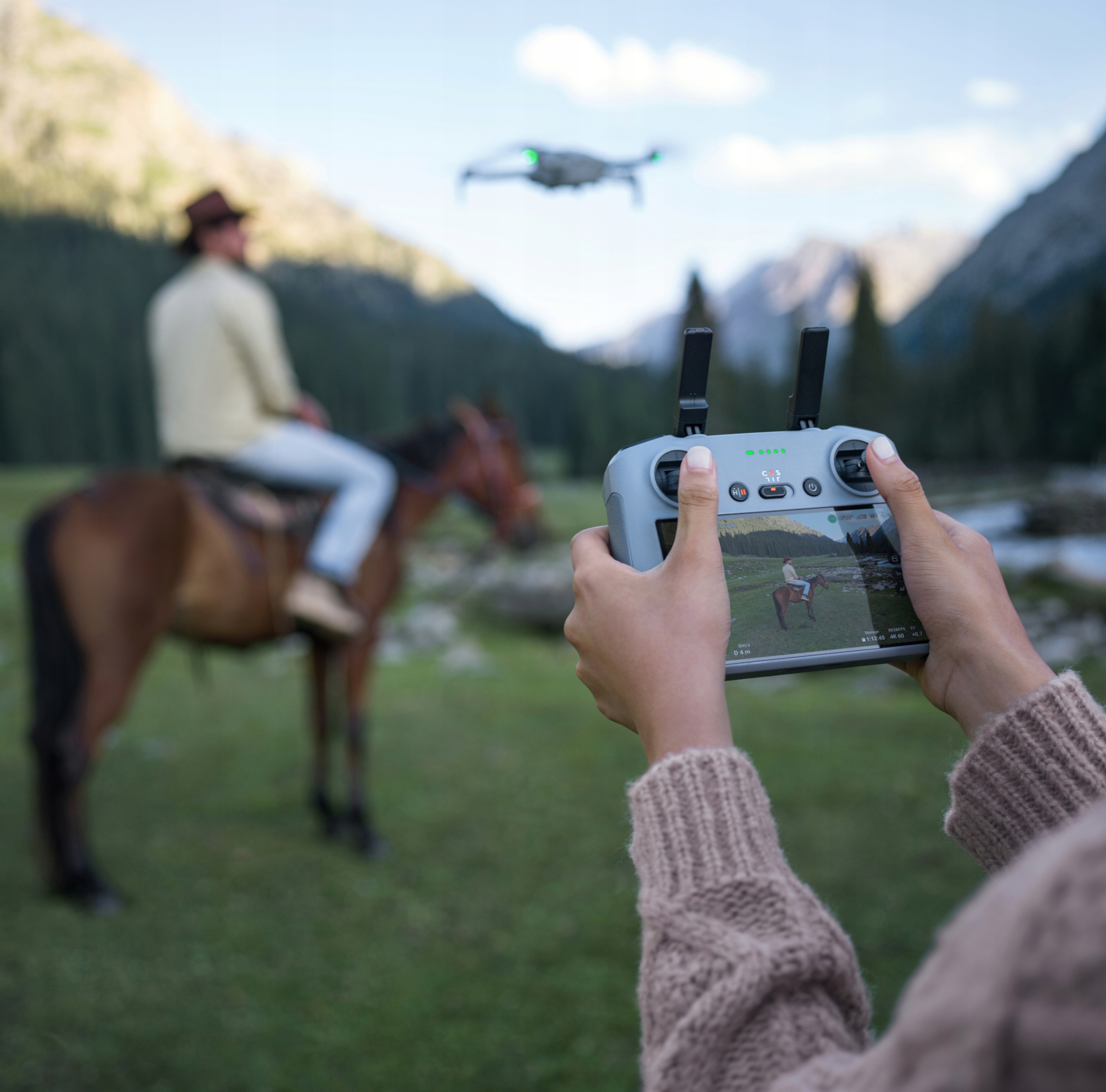 У набір також входить контролер DJI RC 2, який надзвичайно виділяється легка конструкція. Програма DJI Fly за замовчуванням означає, що вам не потрібно використовувати свій смартфон під час польоту дрона. Він оснащений екраном високої роздільної здатності, який гарантує яскраве та читабельне зображення - навіть при повному сонячному світлі. Все це робить керування дроном надзвичайно простим і комфортним.