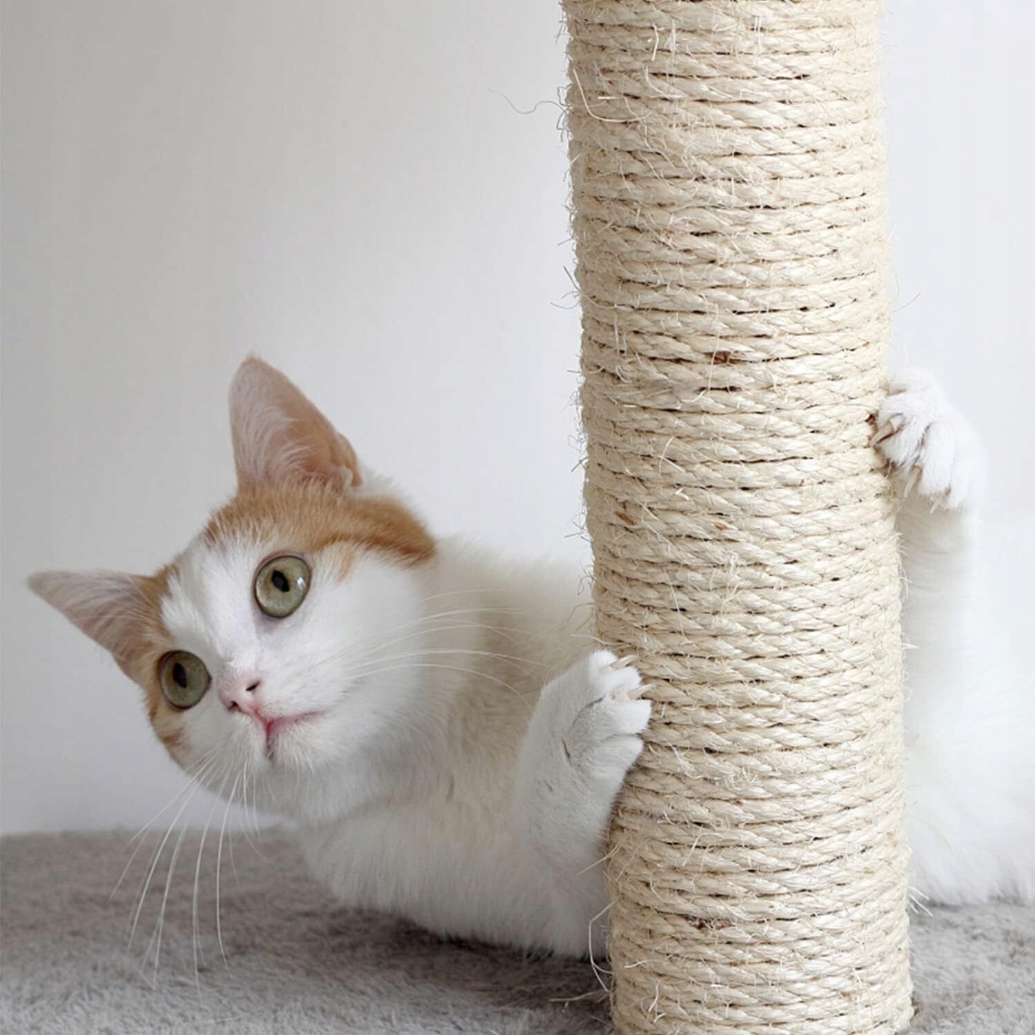 Високоякісні матеріали: без додавання хімічних речовин. Сизал має тверду структуру волокон, він міцний і стійкий до стирання. Сисал -мотузка виготовлена з 100% природного сизалу і є 100% біологічно розкладається. Завдяки цьому ви та ваша кішка можете безпечно користуватися ним довго, не завдаючи шкоди здоров’ю.