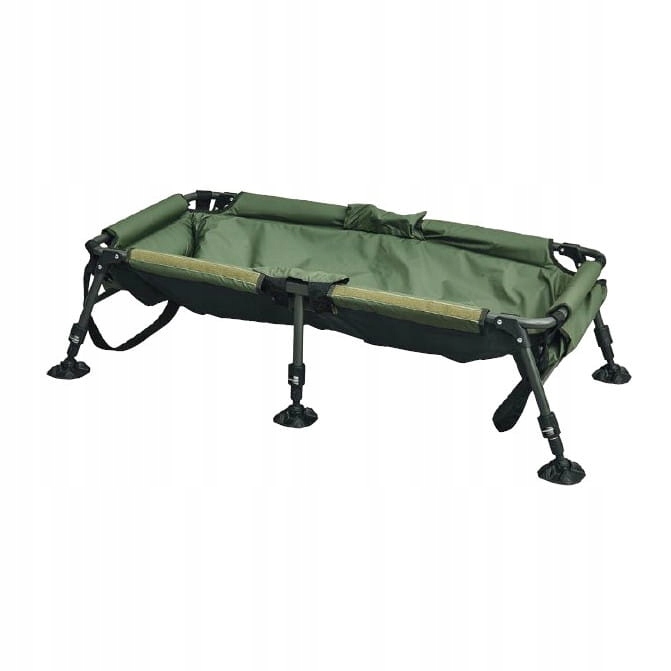 Дуже великий розчіпний килимок із 6 ніжками. Кожна ніжка регулюється і оснащена підставкою, яка не застряє в багнюці. Оливково-зелений матеріал водонепроникний, стійкий до стирання та легко чиститься. Він також достатньо міцний, щоб утримати найбільшу рибу. Килимок підбитий і забезпечує повну безпеку коропа. Чохол із застібкою на липучці та ручки для перенесення роблять його гарним вибором для кожного рибалки.