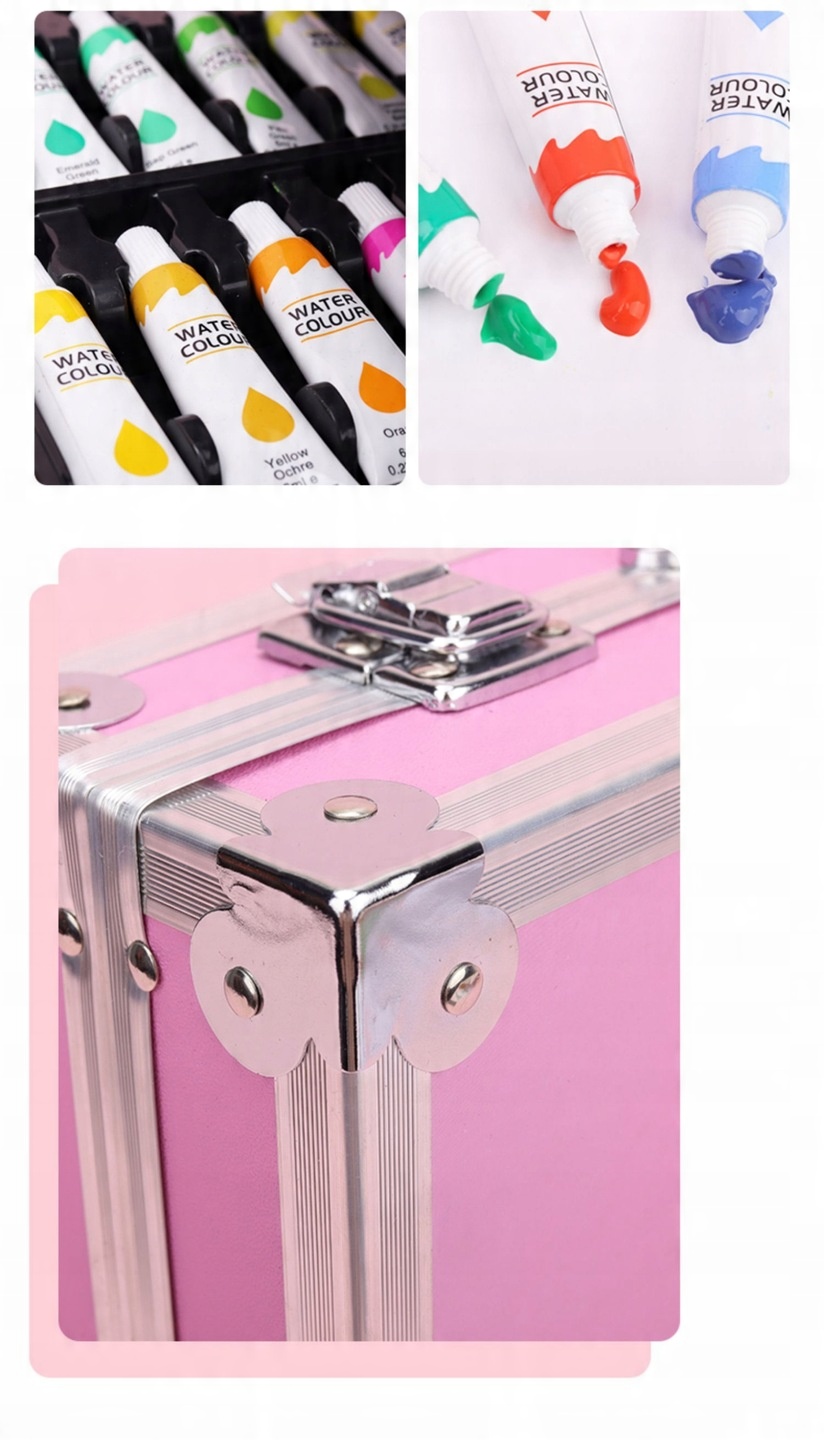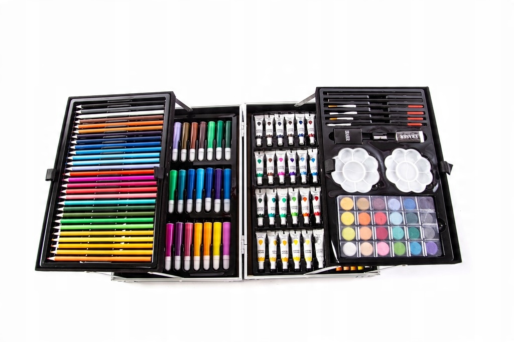 У нашому мистецькому наборі буде щось для всіх - розмальовки, малювання олівців та фарб фарб. Все це в насичених кольорах, які чудово виглядають на папері. Ціле укладено в зручну валізу, яку ви можете легко скласти, закрити і взяти з собою - до школи, дитячого садка, на заняттях мистецтв або в поїздці на малювання на відкритому повітрі!