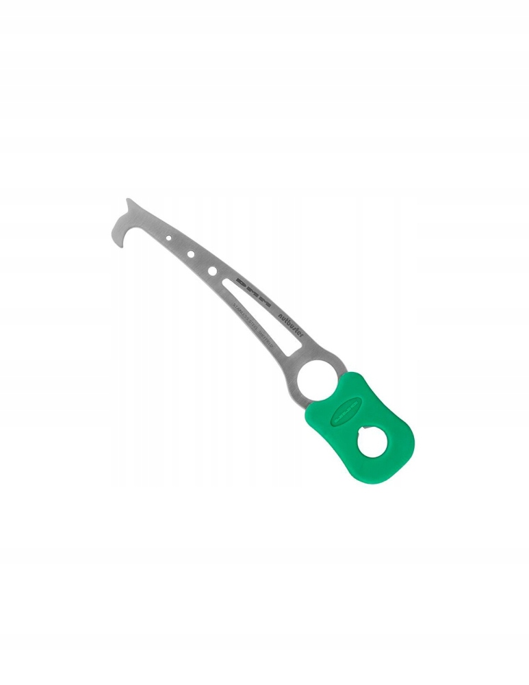 Гайкові ключі безцінні для видалення застряглого обладнання. Гумова рукоятка забезпечує міцний хват і дозволяє постукати по гайкорізу, щоб зняти приклеєну кришку. Його можна зняти, щоб відкрити гайковий ключ на 17 мм, який дозволяє закручувати ослаблені гвинти. Nutbuster вирізаний лазером з нержавіючої сталі для міцності та стійкості до корозії, з вирізаними отворами для мінімізації ваги.