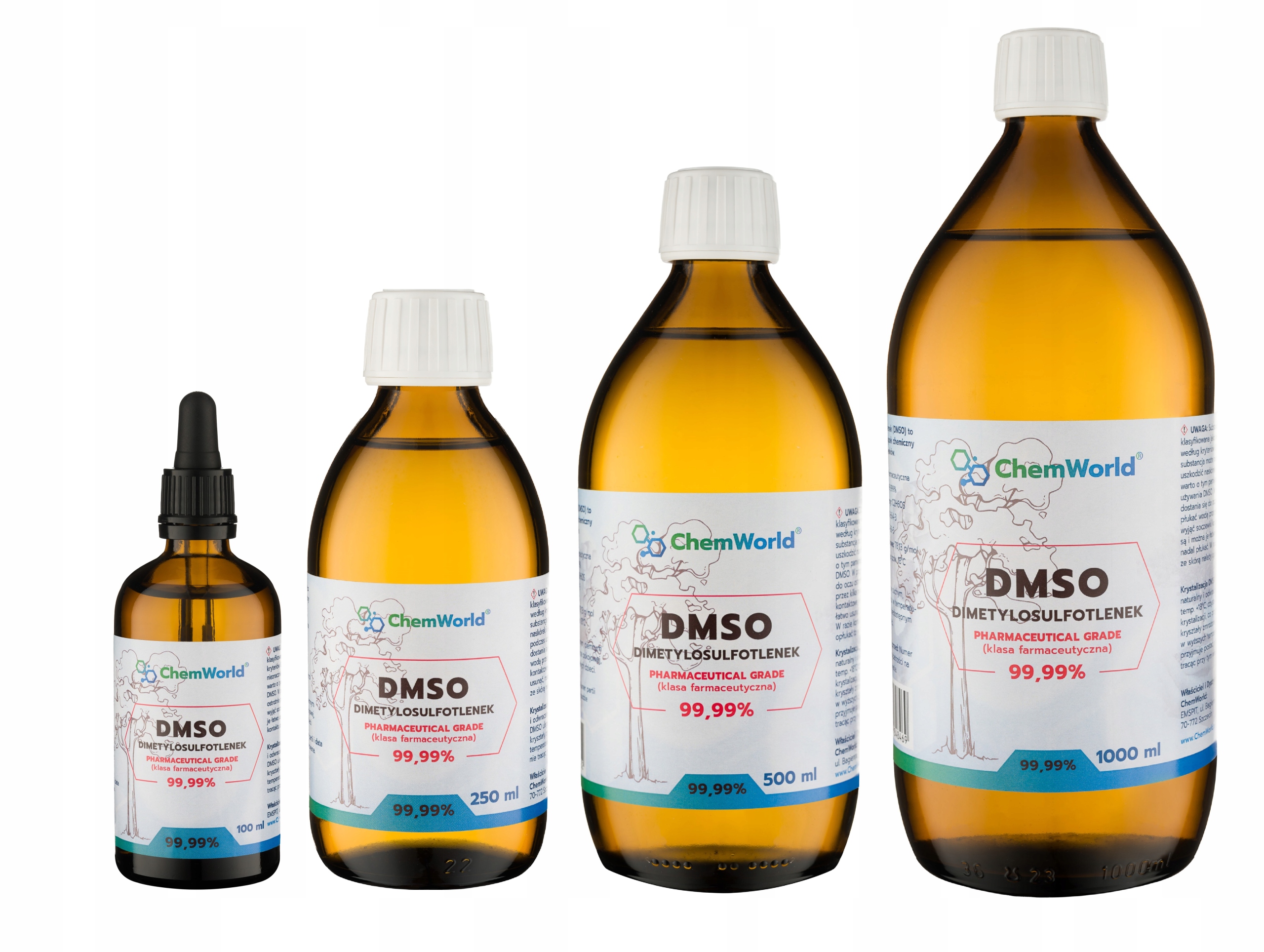 Щоб ДМСО не контактував із пластиком або металом і був захищений від світлого сонячного світла, тобто в спеціальній медичній пляшці з коричневого скла з терміном придатності, спеціальні методи виробництва медичного скла гарантують дотримання всіх вимог, щоб ДМСО зберігався в ідеальних для цієї рідини умовах. Продукт захищений оригінальною голограмою ChemWorld, що гарантує оригінальність, чистоту та найвищу якість продукту.