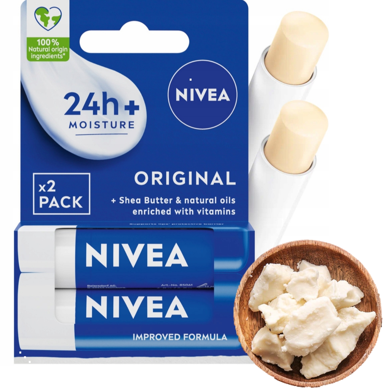 Nivea Original Care lipstick makes the lips extremely м'який і забезпечує їм захист від сушіння. Унікальна формула з натуральними маслами та маслом ши негайно поєднується з губами, забезпечуючи їм 24-годинну гідратацію.