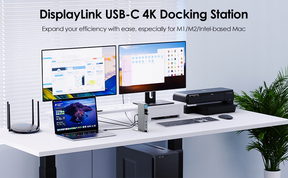 Док-станція, оснащена вдосконаленим чіпом DisplayLink, долає обмеження процесорів MacBook M2/M1, дозволяючи комп’ютерам MacBook із процесорами Intel/M1/M2 легко розширювати набір двома моніторами та відображати різний вміст.