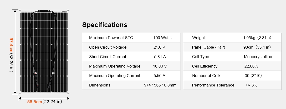 підходить для будь -якого місця, гнучкого та зручного. Він може бути зігнутий до максимальної арки 30 градусів, що робить його ідеальним для зберігання у вузьких просторах або переповнених місцях. Ця сонячна панель має вихідну потужність 100 Вт, але важить лише 1,05 кг, полегшуючи транспорт, підвіску та встановлення. Завдяки функціям захисту від безпеки, включаючи анти -анті -анті -анті -анті -анті -анті -анті -анті -анті -анті -анті -ciruit захист, це забезпечує безпеку вас та ваших пристроїв.