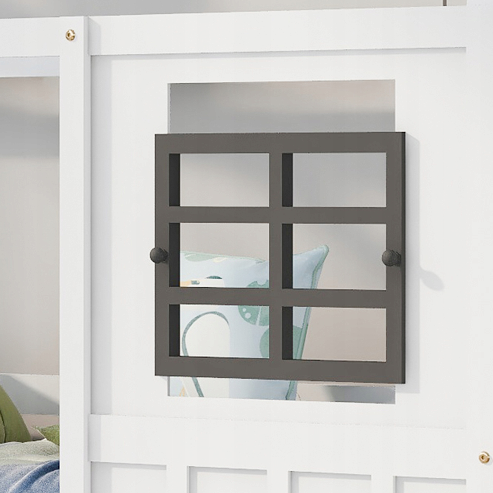 4 Краса вікон додається за допомогою віконних рамки Grey -Truss з ніжними кнопками. Безпечний та піднесений дизайн: Щоб запобігти випадковому доторкненню дітей, продукт оснащений багатьма наклейками, що покривають гвинти. Оптимізовані деталі для більшої безпеки. Тепла і затишна форма будинку: захисні бруски та дерев’яні захисні панелі забезпечують дітям із гарним сном. Форма даху будинку дає відчуття тепла і спокою. Суцільна конструкція: тверда рама з дерева, товсті пластини МДФ та опорні ноги посередині ліжка з обох боків надають ліжку стабільну та міцну конструкцію. Чотиристороння структура захисту робить краї ліжка ще більш безпечними та стабільнішими.