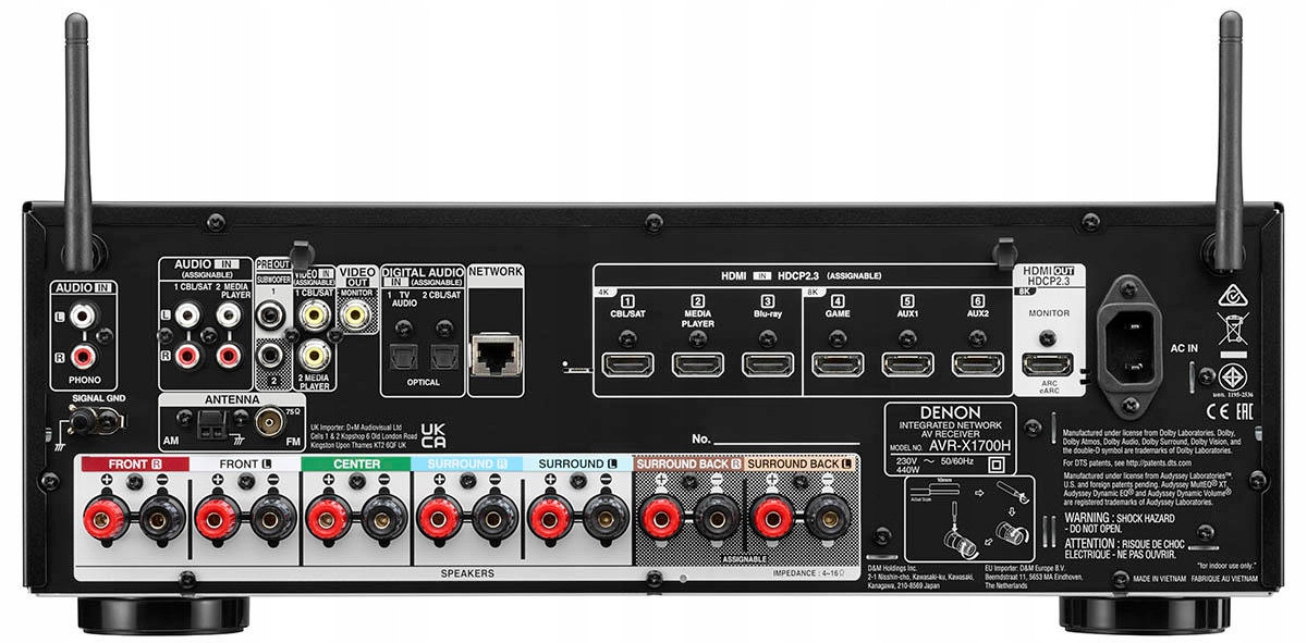 - Телевізор з інтелектуальною сумісністю: керуйте Denon AVR-X1700H за допомогою пульта дистанційного керування телевізора через HDMI CEC