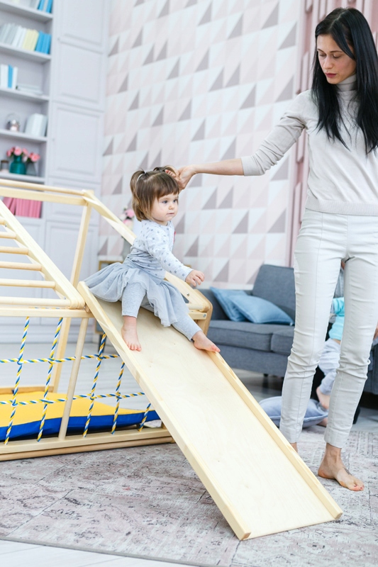 Дитячий дерев'яний домашній майданчик - багатофункціональний ігровий куточок. Це найкраще місце для цікавих розваг малечі. Ігровий майданчик Domino home відкриває нові можливості для занять спортом завдяки обертанню піраміди. Це унікальна, стильна розробка.
