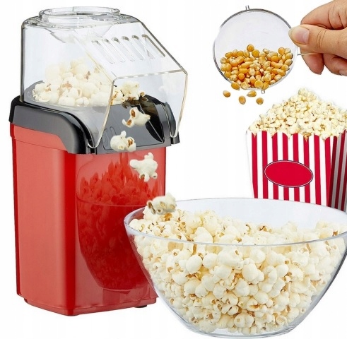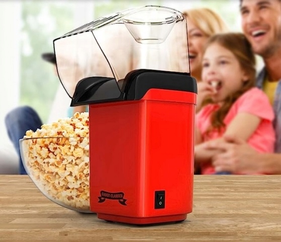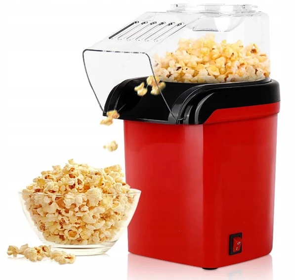 Більшості виробників попкорну потрібен жир, щоб розігріти кукурудзу та почати її лопати. Пропонована машина для приготування попкорну не потребує жиру, оскільки для смаження кукурудзи вона використовує тепле повітря. Це ідеальне рішення для людей, які піклуються про свою фігуру і водночас мають слабкість до попкорну.