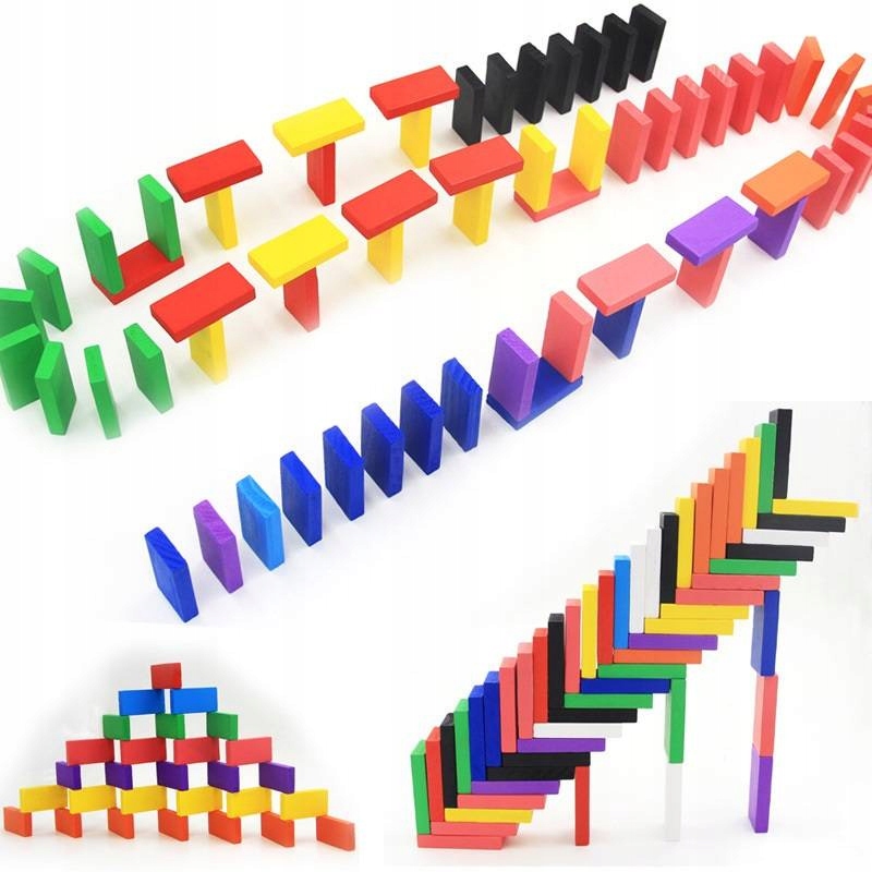 Виготовлені у яскравих кольорах, привертаючи увагу малюків. Ідеально підходить для гри та навчання! За допомогою кольорових блоків ви можете влаштувати довгі доміно в будь -якій формі. Все, що вам потрібно, - це трохи творчості для дивовижних візерунків. Дерев’яні елементи можна використовувати не тільки для цього!
