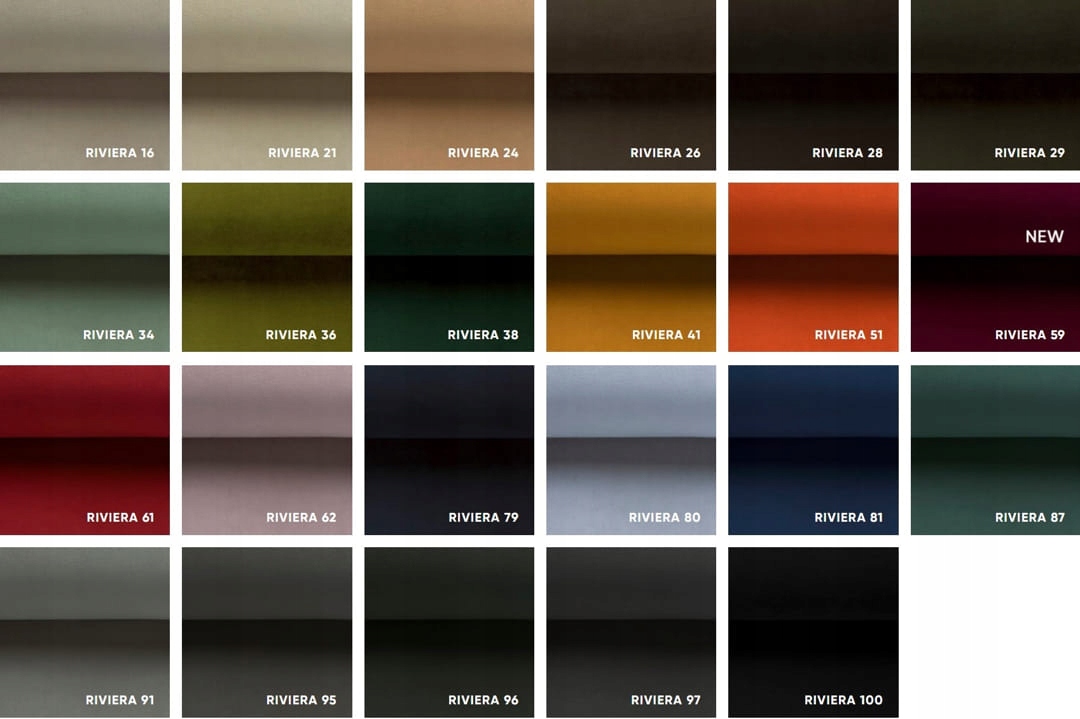 Рів'єра міцна, стійка до пошкоджень і водночас дуже елегантна. Оксамитовий матеріал надзвичайно приємний на дотик. Вона плюшева, тому тканина "розчісується з волоссям" (затінювальна тканина)