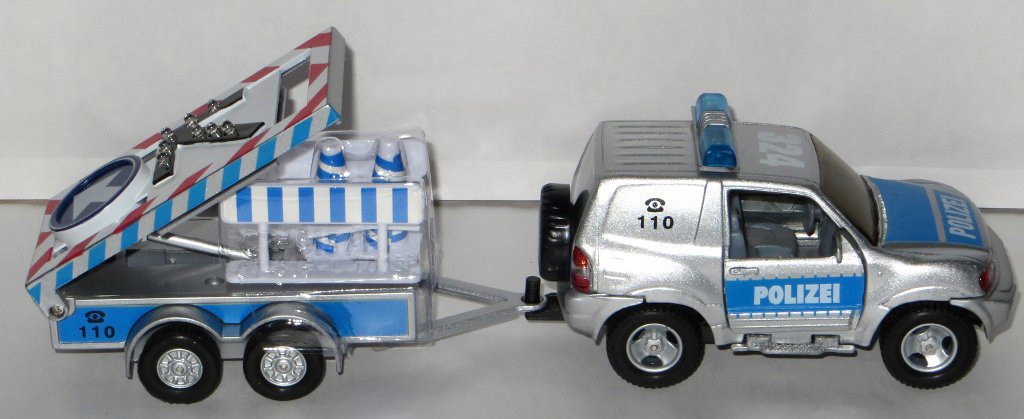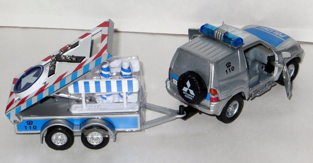 КОМПЛЕКТ МЕТАЛЕВОГО ПОЛІЦЕЙСЬКОГО АВТОМОБІЛЯ MITSUBISHI PAJERO З ПРИЧЕПОМ З ЛІХТОМ + ЗАМКИ + КІСТКИ HXCL009.