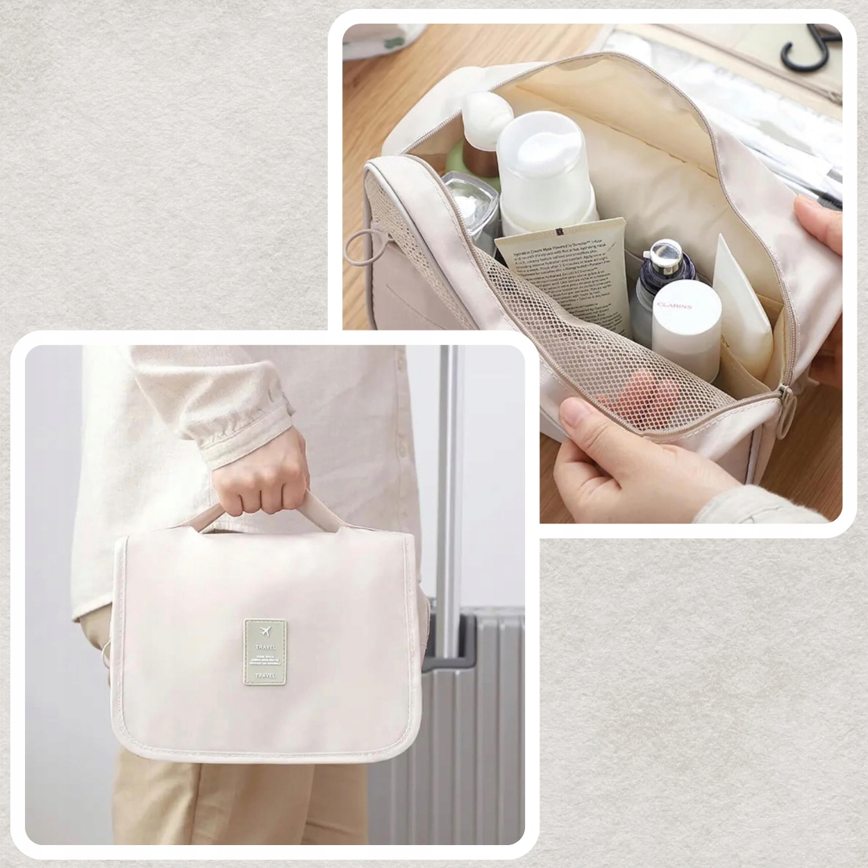 ✅ Вбудований гачок – дозволяє зручно повісити косметичку у ванній, на дверях або будь-де, заощаджуючи місце на полиці.