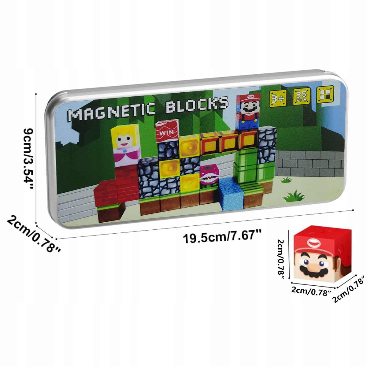 Магнітні будівельні блоки, іграшка для подорожей для дітей, портативні магнітні ігрові елементи в залізній коробці, 35 шт., магнітна іграшка-конструктор, подарунок у подорож для дітей віком від 3 років