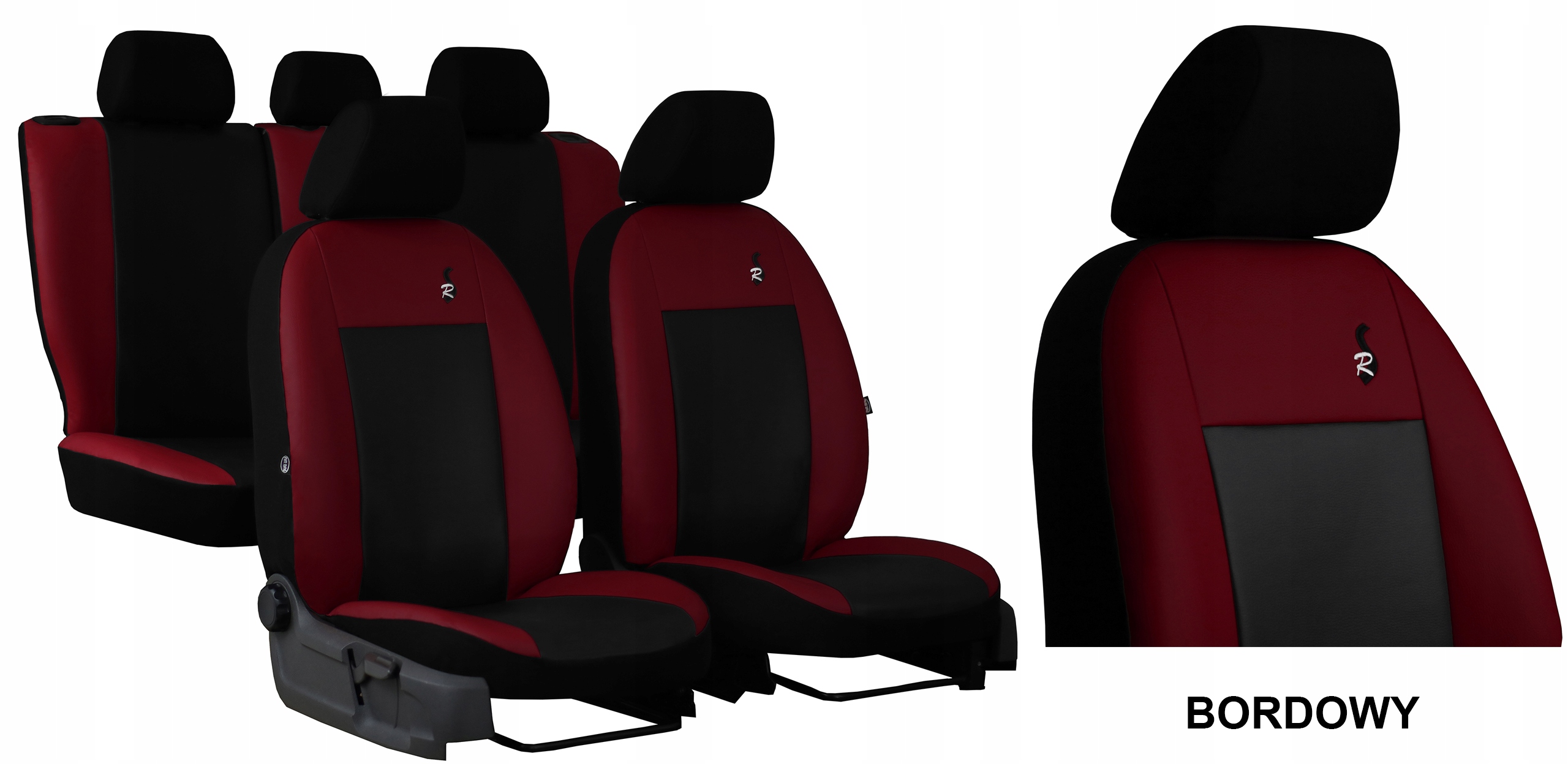 Наші чохли ROAD повністю покривають сидіння. Передня частина (спинка і сидіння) обшита екологічною шкірою. Спинка, підголівники і бічні частини чохлів виготовлені з міцного чорного матеріалу. Завдяки цьому рішенню оригінальна оббивка сидінь захищена від пошкоджень і бруду в найбільш відкритих місцях.
