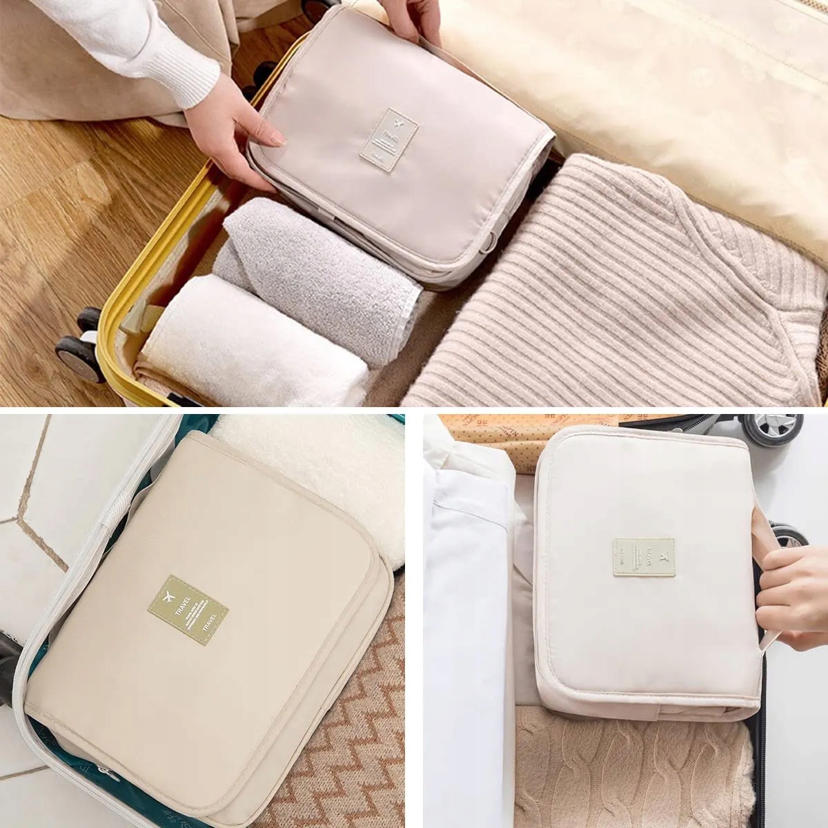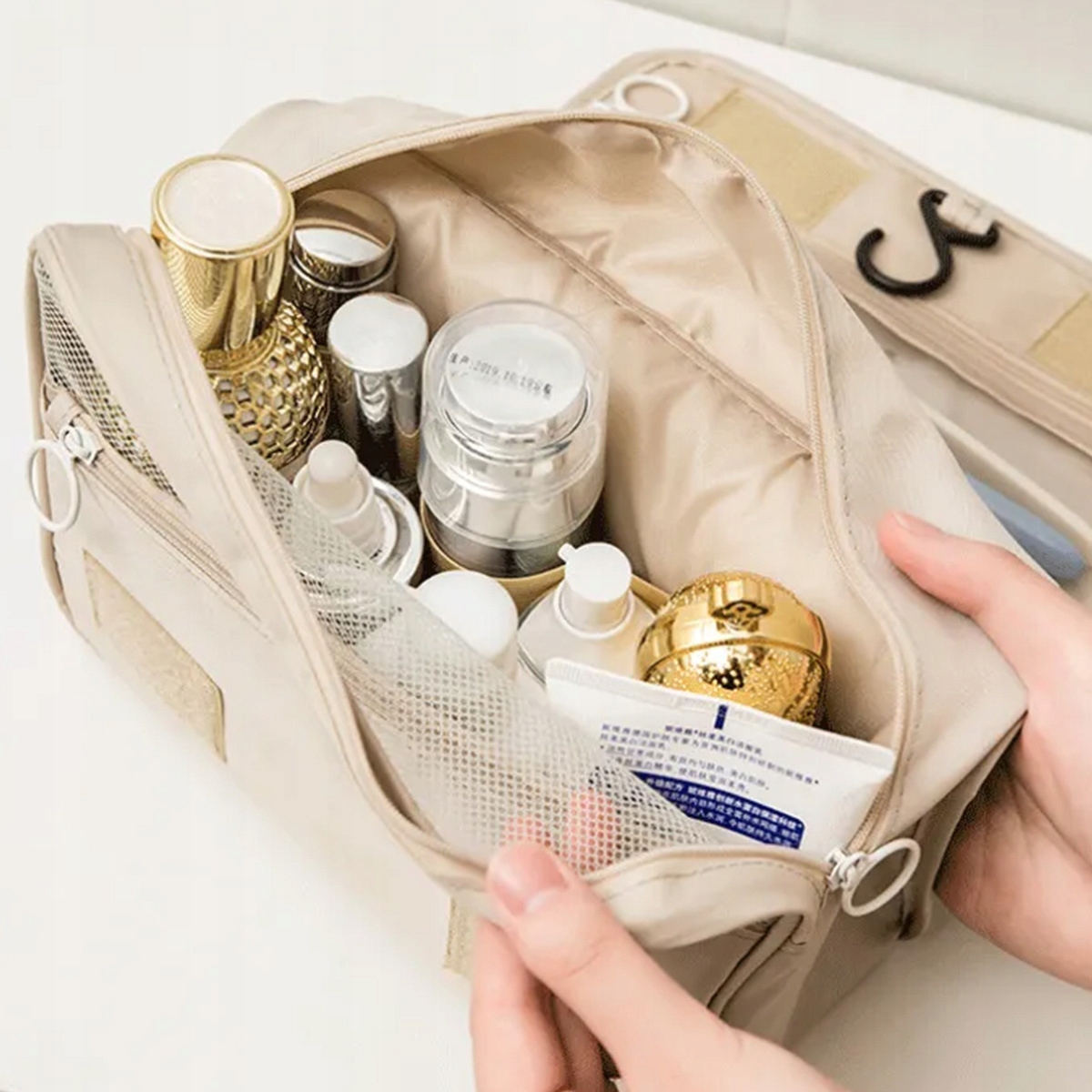 Підвісна косметичка для вашої зручності: завдяки вбудованому гачку наша косметичка стає справжньою попутник. Повісьте його на двері, у ванній або в шафі, щоб мати косметику під рукою. Це ідеальне рішення для людей, які цінують комфорт і організацію під час подорожі.