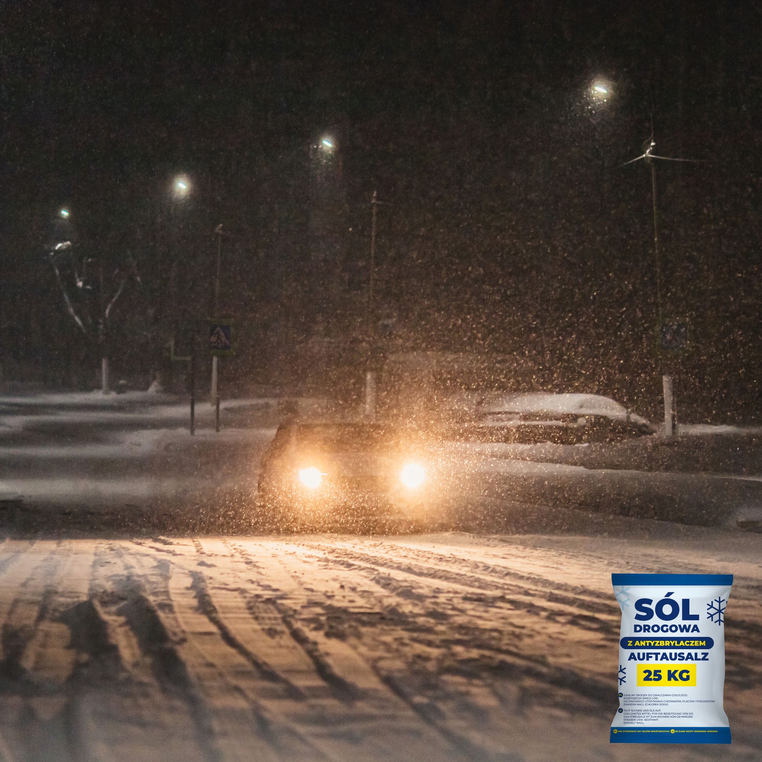 ✅ Захист від зледеніння - Дорожня сіль також діє як профілактичний засіб, який запобігає утворенню льоду на дорогах.