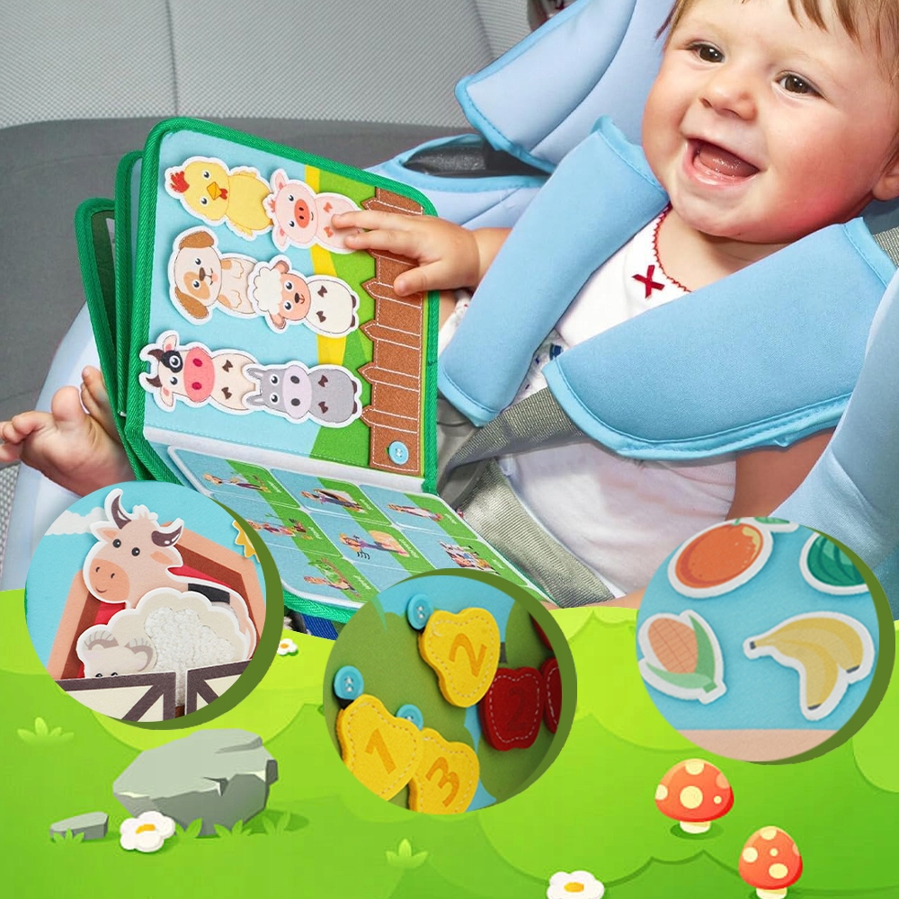 ➡️ БЕЗПЕЧНО ТА ДРУЖЕ ДЛЯ ДІТЕЙ: Ця дошка для занять, виготовлена з м’якого та безпечного фетру, зручна для рук і розроблена для гри без ризику. Великі компоненти зменшують небезпеку, а попередньо встановлена липучка полегшує використання. Яскраві кольори та персонажі ферми привертають увагу та стимулюють творчість