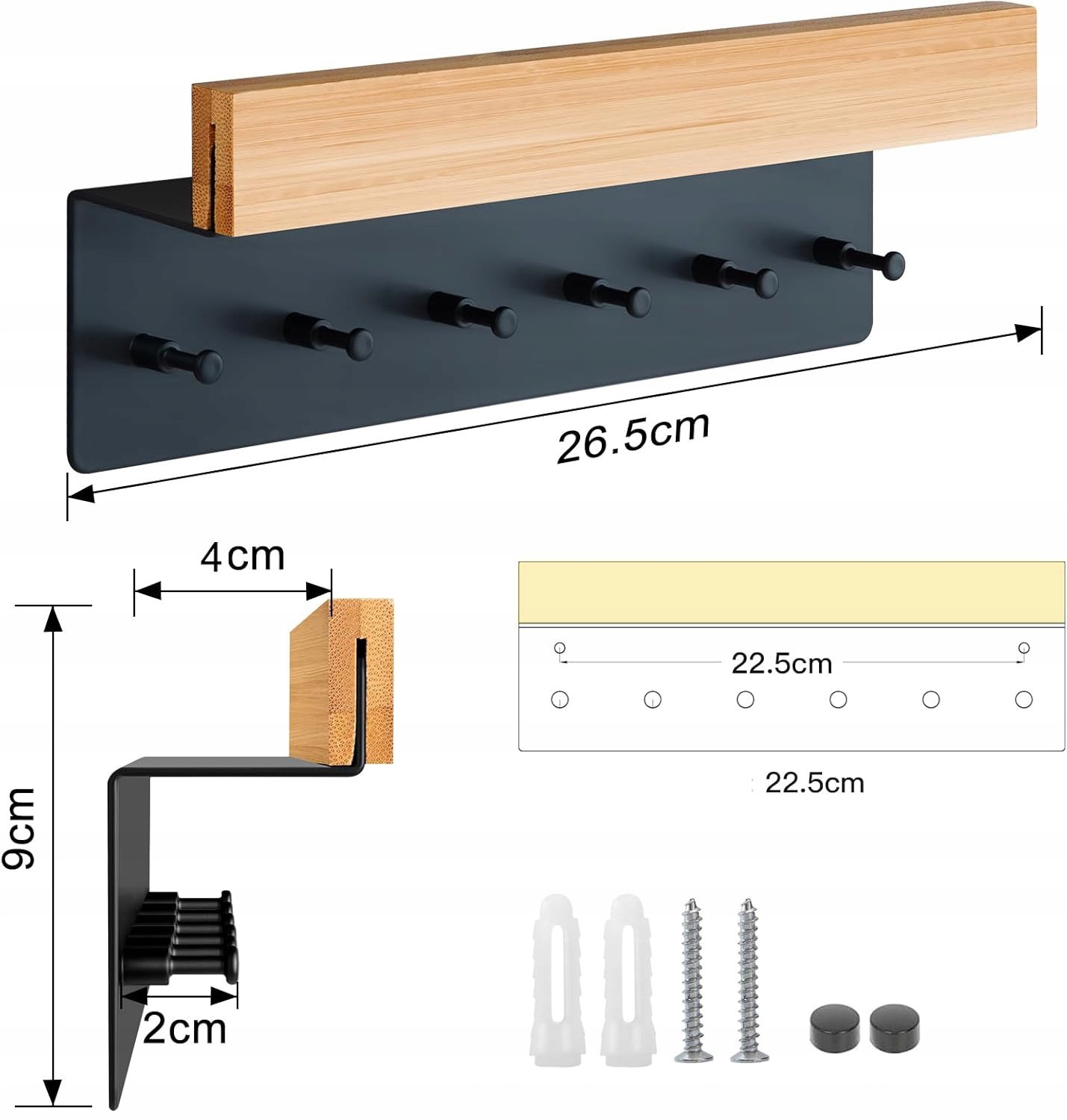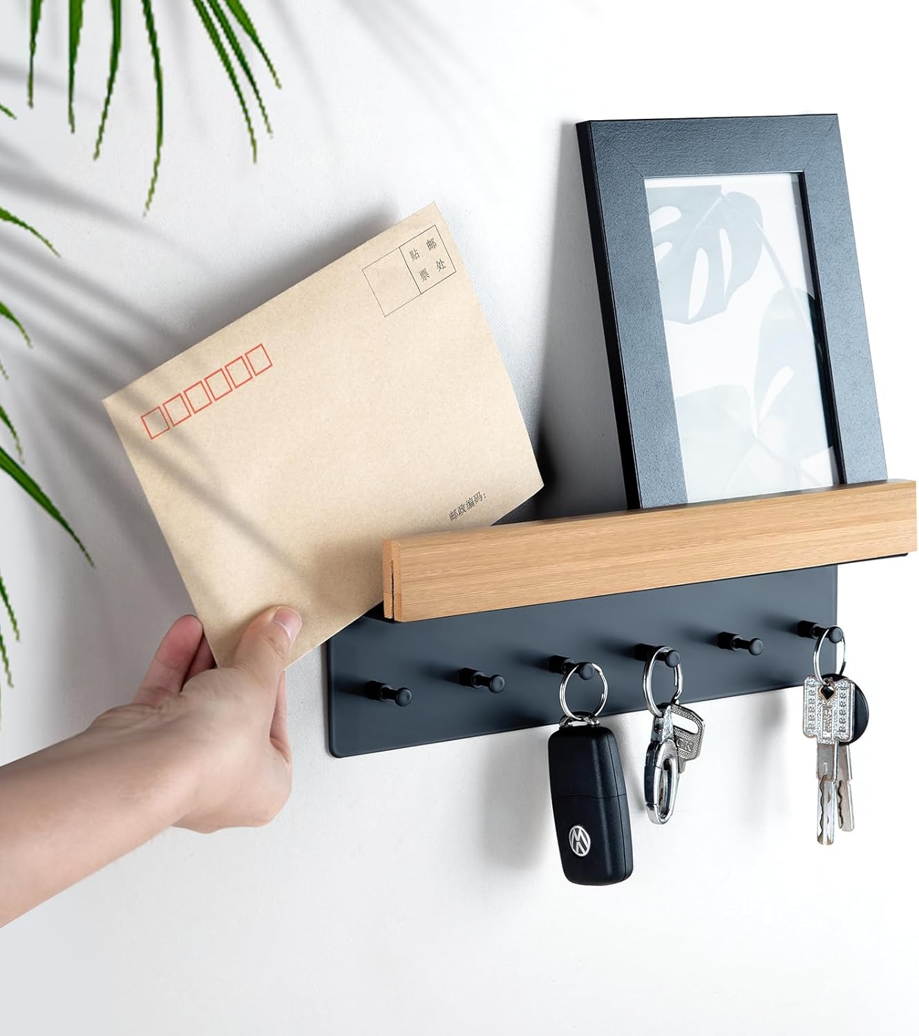 1. З 6 розумними гачками вішалка для ключів забезпечує велику полицю для подвійних ключів. Окрім зберігання ключів, сонцезахисних окулярів і курток, на полиці достатньо місця для листів і блокнотів.