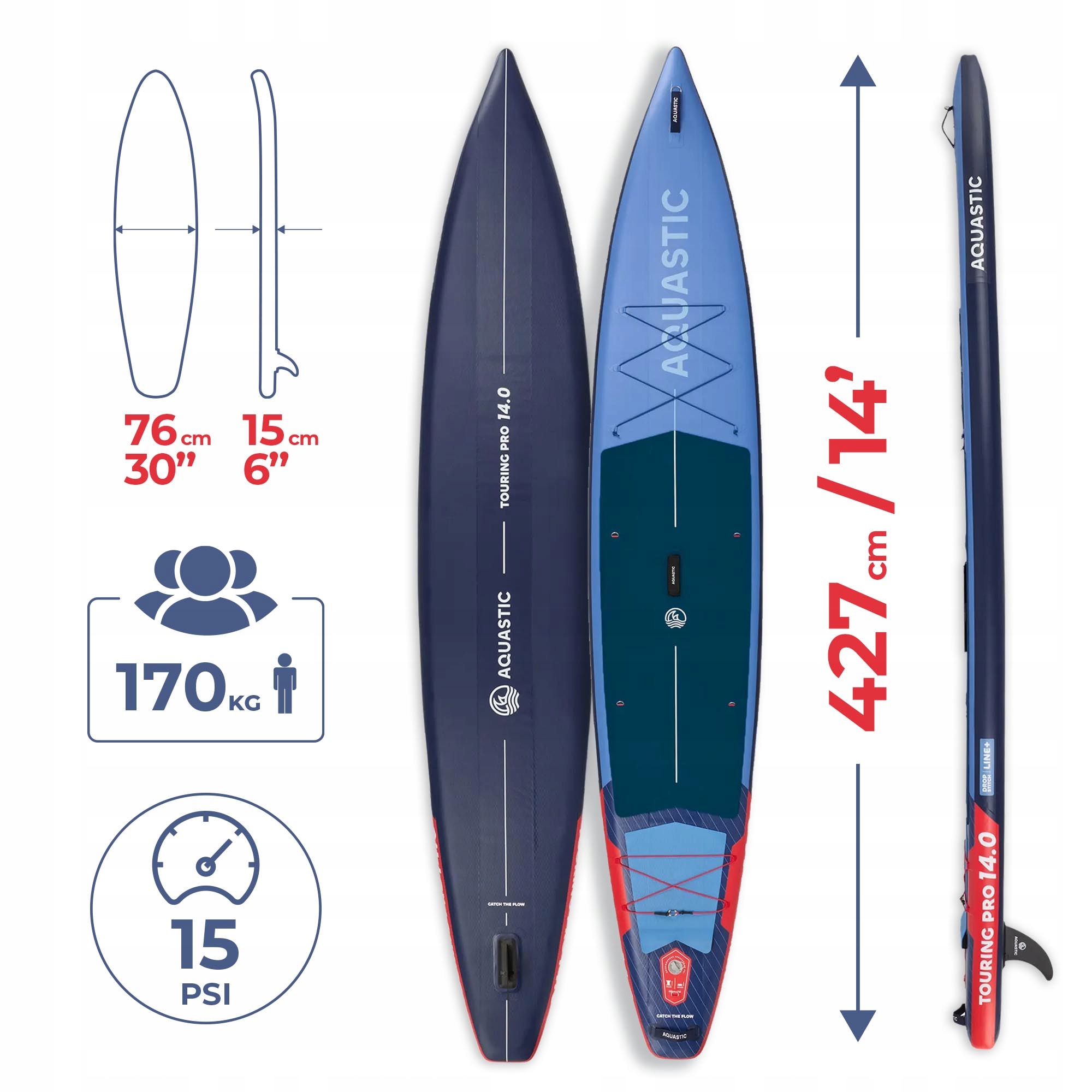 Модель Touring Pro 14'0 "Aquastic є найсучасніша гастрольна дошка у пропозиції виробника - створена для амбітних користувачів хто очікує відмінної продуктивності, стабільності та комфорту під час експедиції довгих швидкостей туристики та гонок, що знаходяться в умовах.