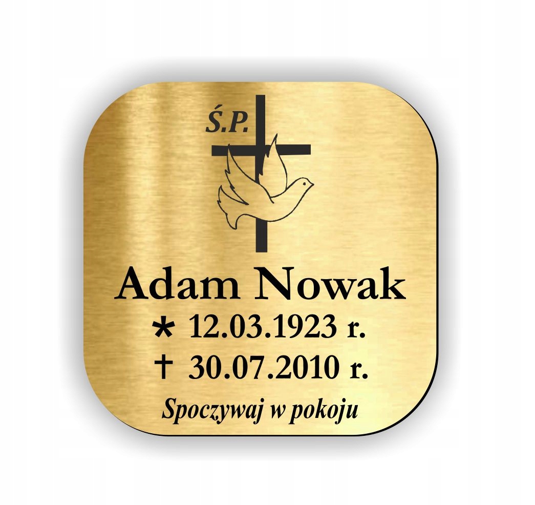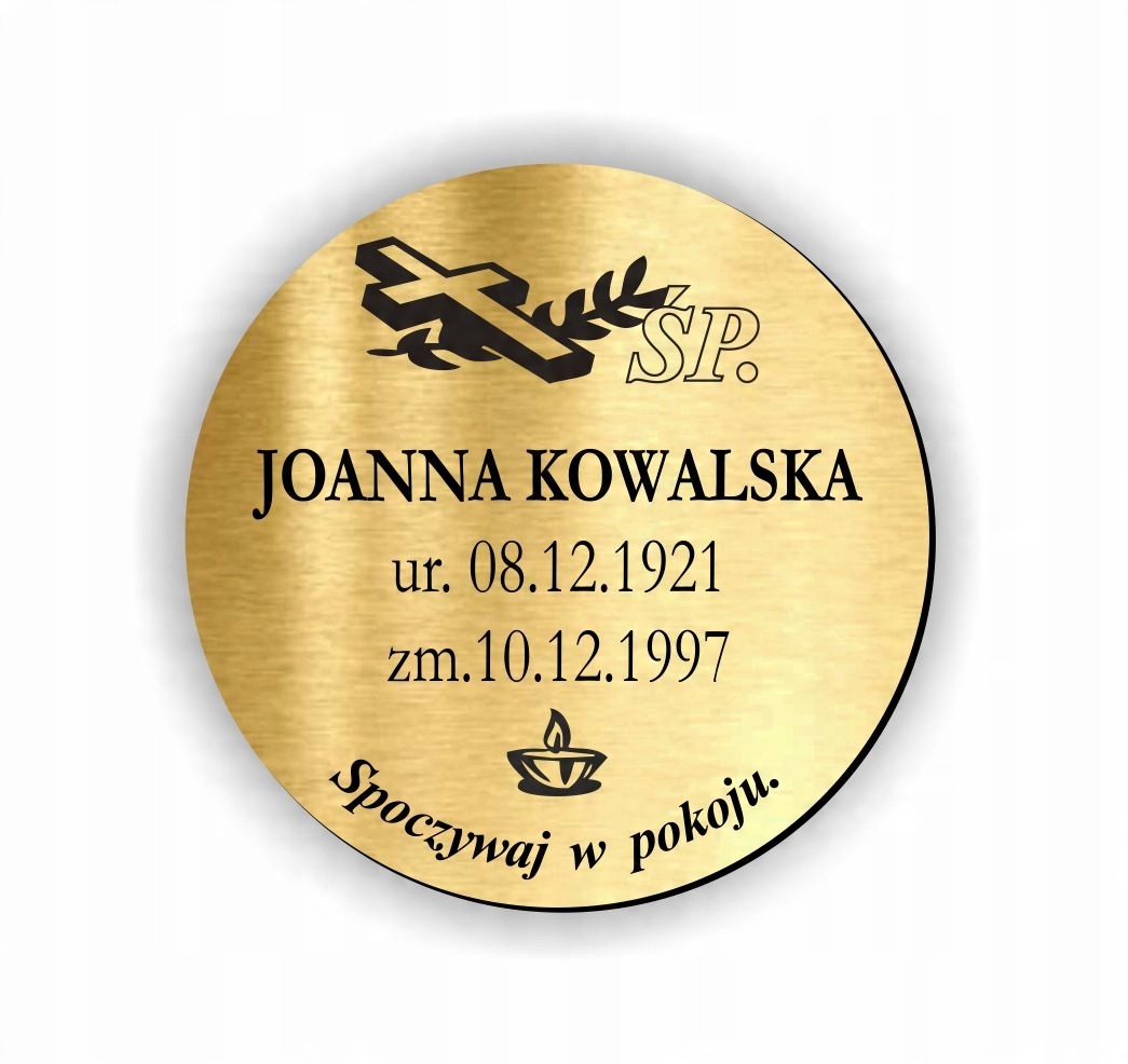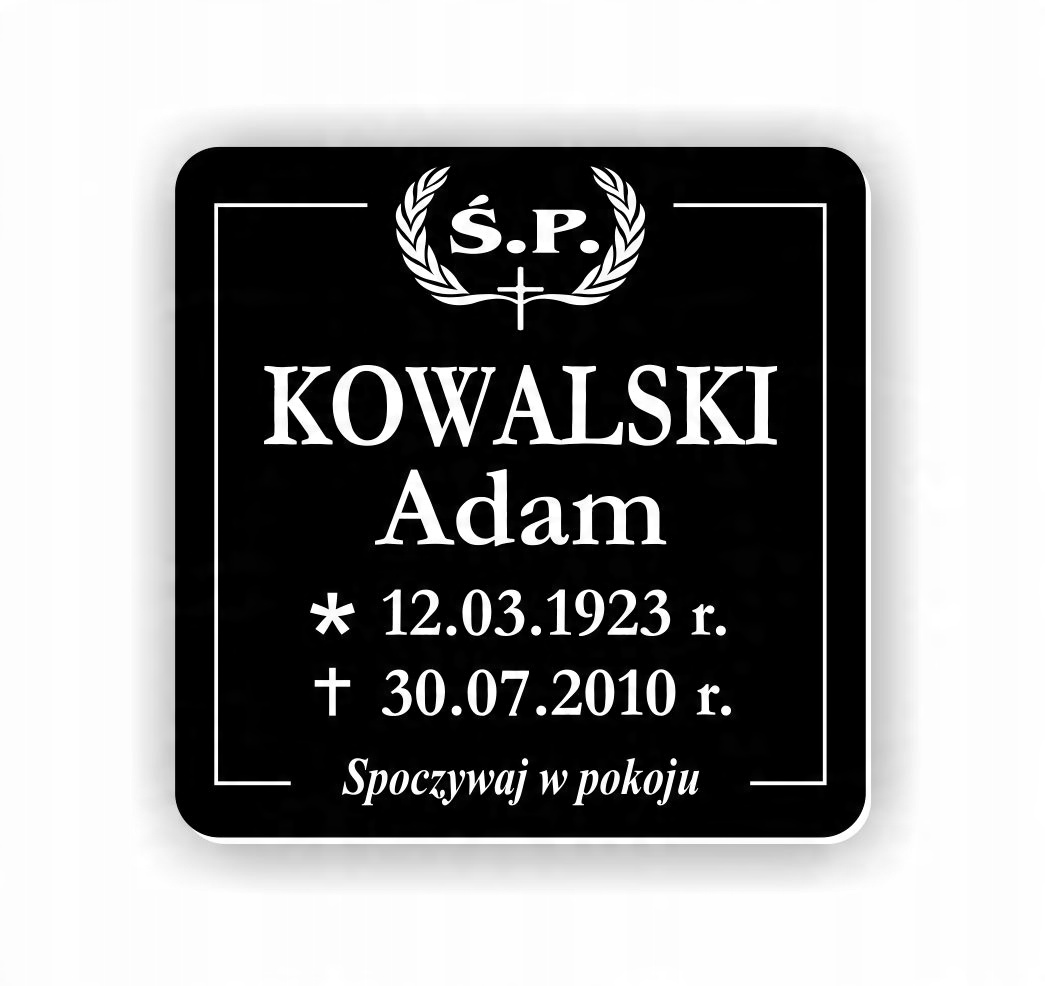 - Бляшка, виготовлена з гравірувального ламінату з товщиною 3 мм , барвистого шару закриваючого, завдяки якому є дуже міцним, не вигинає. буде працювати під час встановлення гвинтів як на хресті, так і на тарілці.