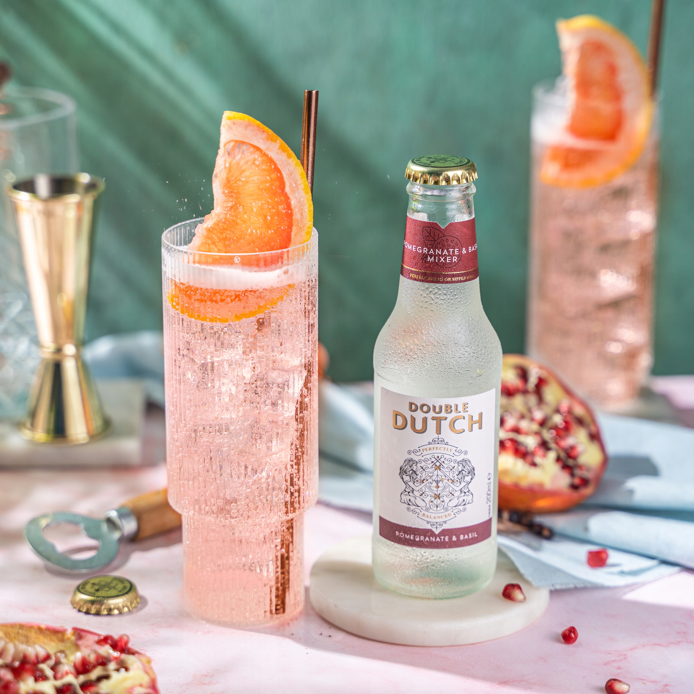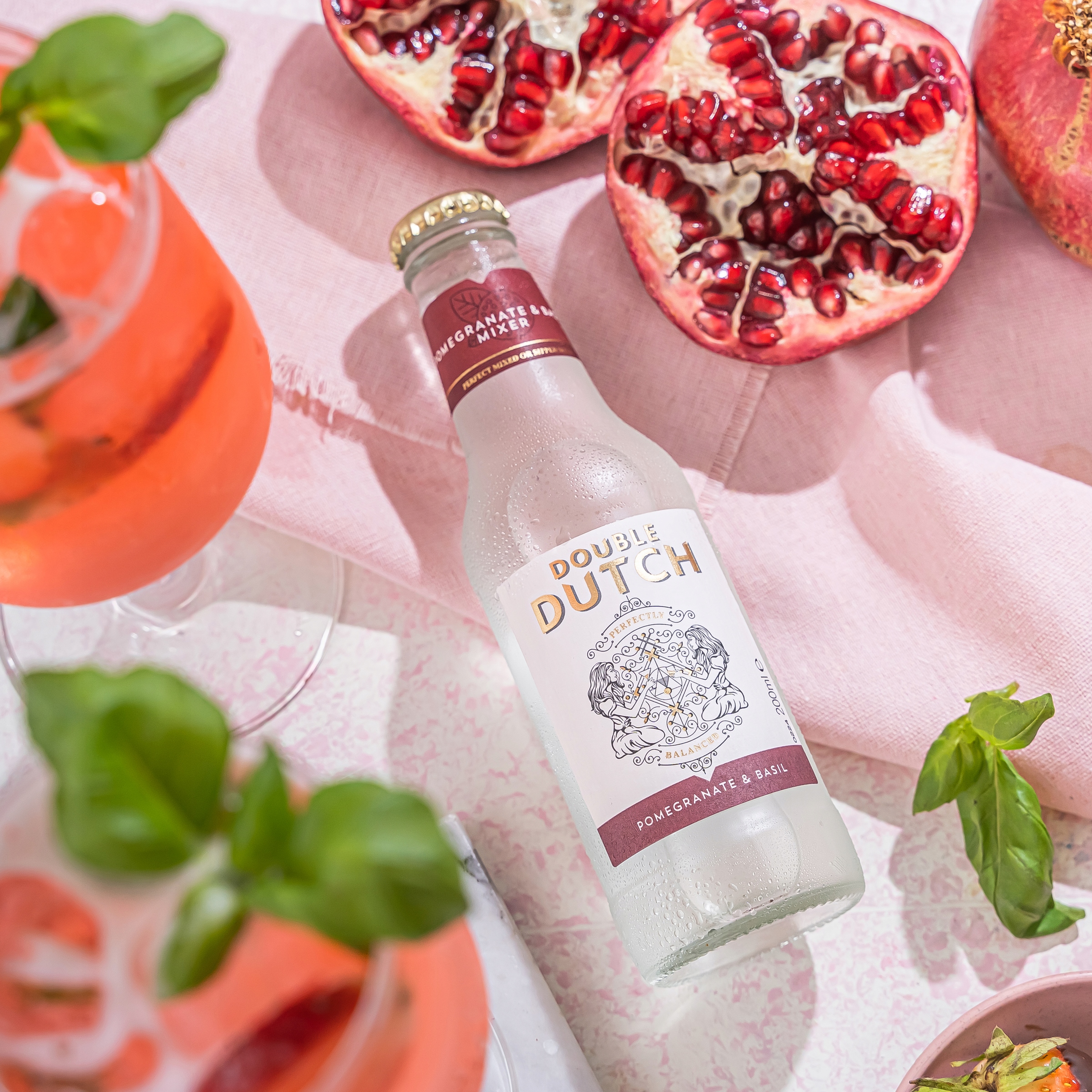 Мрієте про коктейль, який порадує вас своїм неповторним смаком і принесе у ваш келих свіжість грецького літа? Double Dutch Pomegranate & Basil — це поєднання солодко-терпкого граната та трав’яного базиліка, що створює унікальний, багатовимірний смак — ідеальний як для класичних, так і для оригінальних коктейлів.
