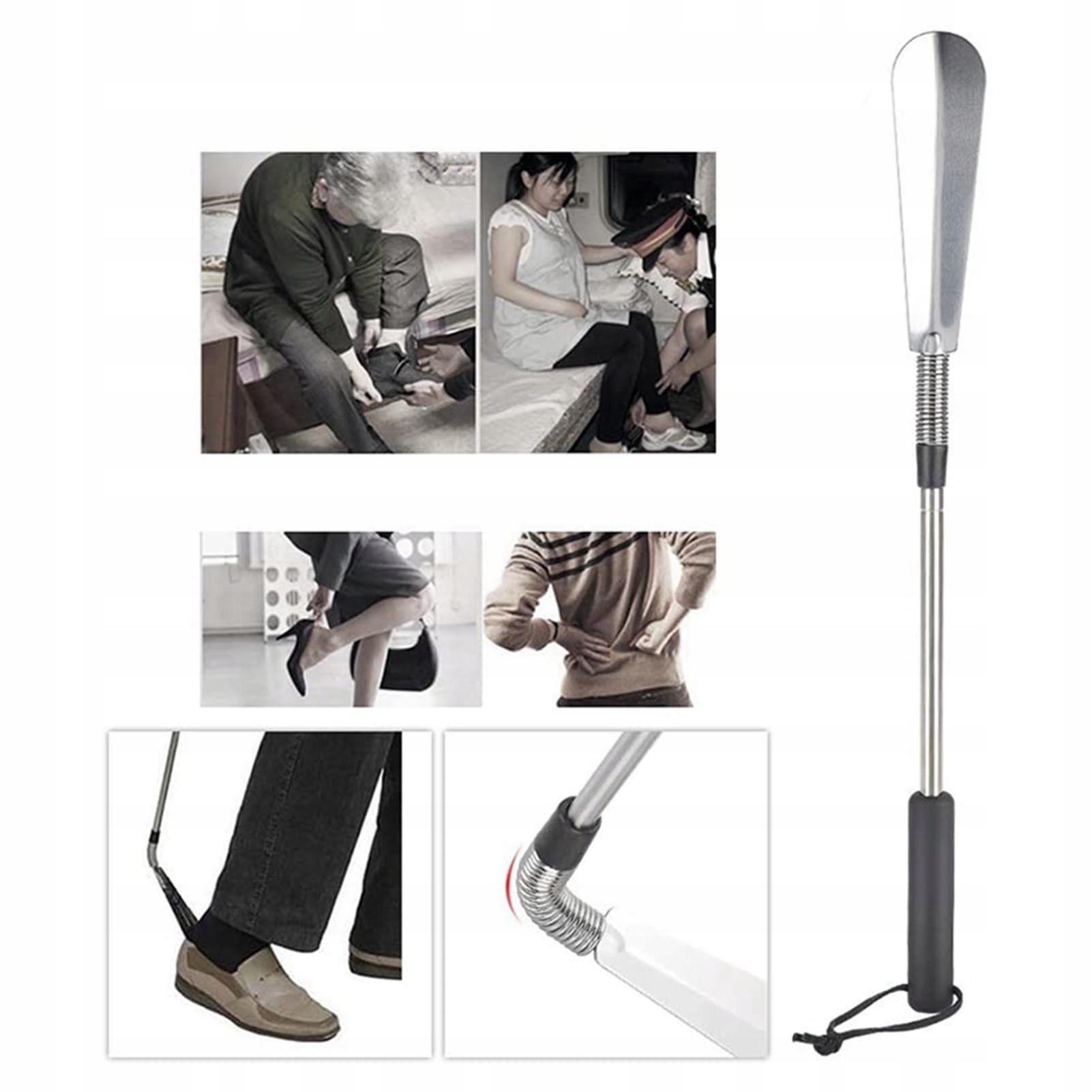 Цей продукт допоможе вам поставити ногу у взуття під будь-яким кутом і взувати взуття, не нахиляючись. Він виготовлений з нержавіючої сталі, міцний для тривалого використання. Телескопічна конструкція, яку можна налаштувати відповідно до ваших потреб. Протиковзка гумова ручка, зручна для захоплення.
