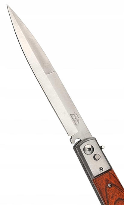 Збоку ручки є кнопка, яка швидко активує пружинний механізм, що відкриває лезо.