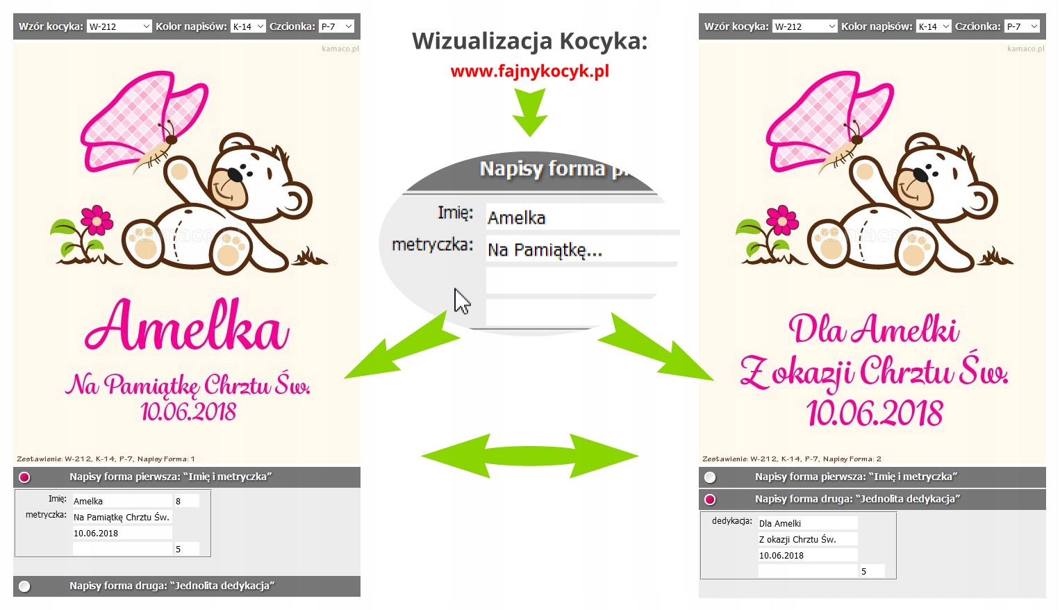 Тут ви можете легко візуалізувати свою ідею самостійно. Спробуйте візерунки ковдр, кольори ниток і різні шрифти.