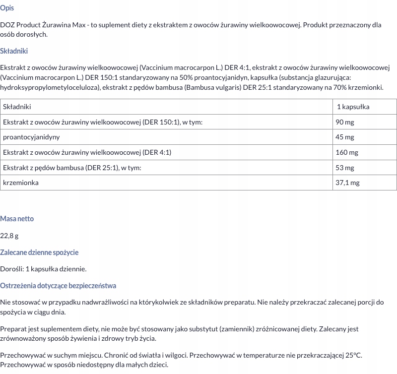 Доз -продукт Журавлина Макс, капсули, 60 шт.