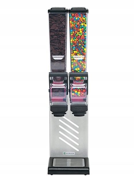 Диспенсер має металеву полицю, яку можна розмістити на стільниці. Його можна використовувати для порціонування та дозування морозива та десертних начинок, пластівців, цукерок, горіхів та інших добавок.