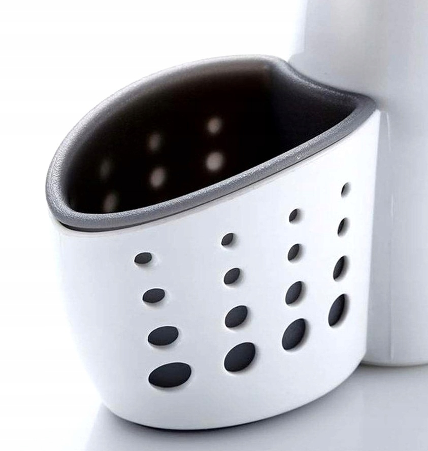 ✅ Контейнер, прикріплений до дозатора, дозволяє гігієнічно зберігати губку або банні приналежності