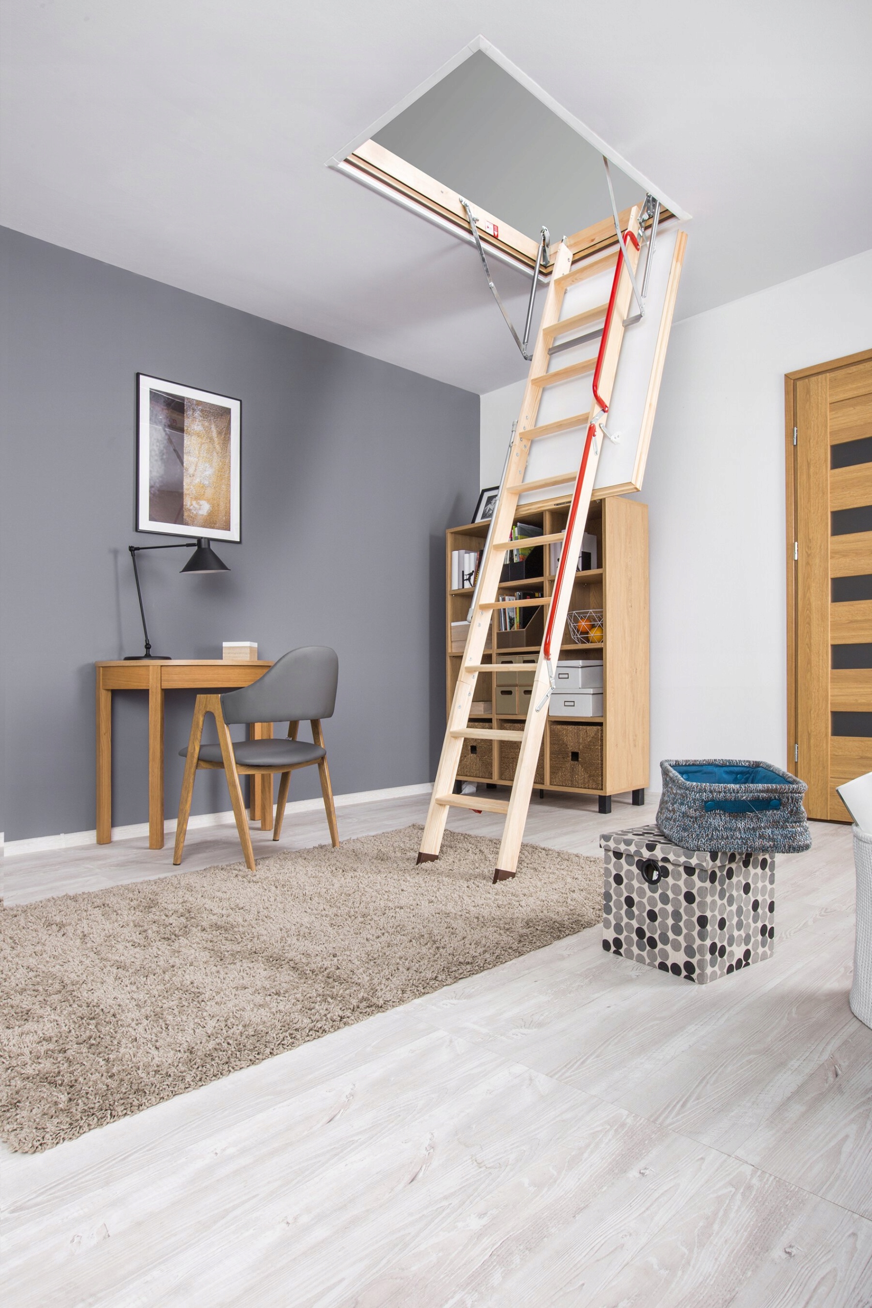 LWL Extra - це дерев'яні горищні сходи нової конструкції з покращеними теплоізоляційними параметрами. Для підвищення безпеки та комфорту використання сходи оснащені додатковим поручнем, встановленим на середній сегмент, і механізмом розвантаження, який допомагає складати та розкладати драбину.