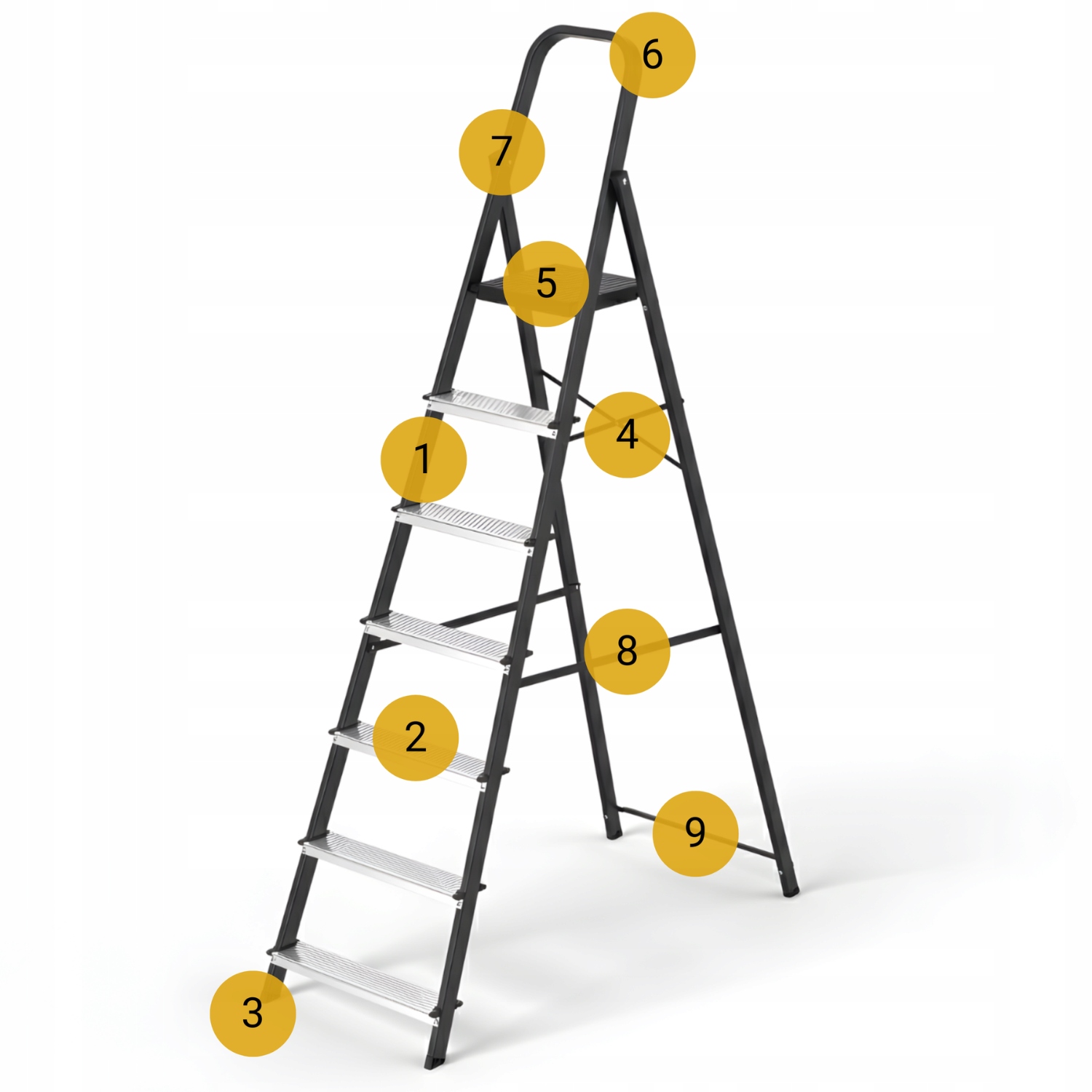 Надійність і безпека є нашим пріоритетом. Конструкція драбини виготовлена з високоякісної сталі, що гарантує міцність і здатність витримувати навантаження до 150 кг. Все це було додатково покрито чорною порошковою фарбою, що забезпечує стійкість до корозії та сучасний та естетичний вигляд протягом багатьох років. Незважаючи на свою міцність, драбина напрочуд легка - вона важить всього 6,66 кг. Це робить його надзвичайно зручним, і ви можете легко перемістити його туди, куди вам потрібно, не напружуючи хребет. Ця компактна та добре продумана конструкція робить роботу просто кращою та комфортнішою.