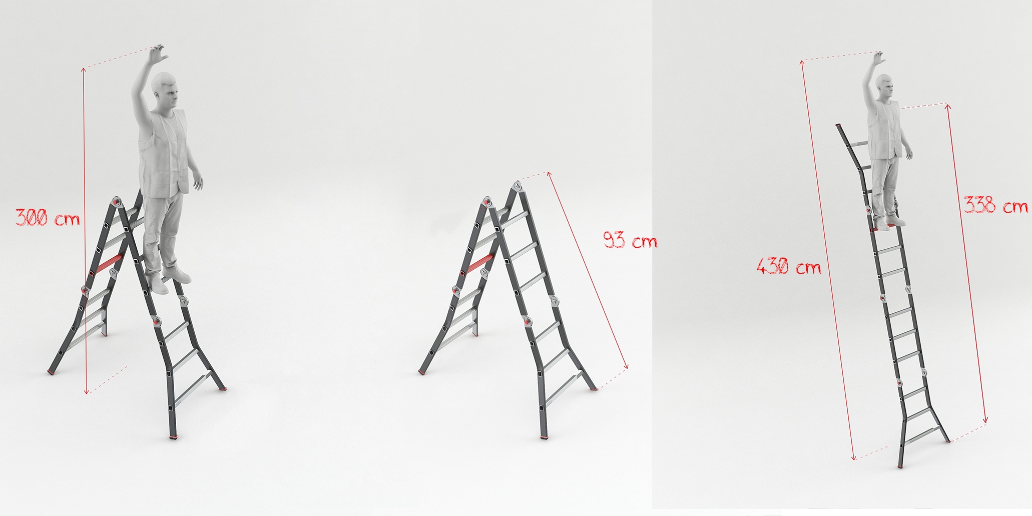 Незалежно від того, чи потрібна вам драбина в положенні А, як платформа, настінний або традиційний тримач. драбини - у Varitrex PRO є все.