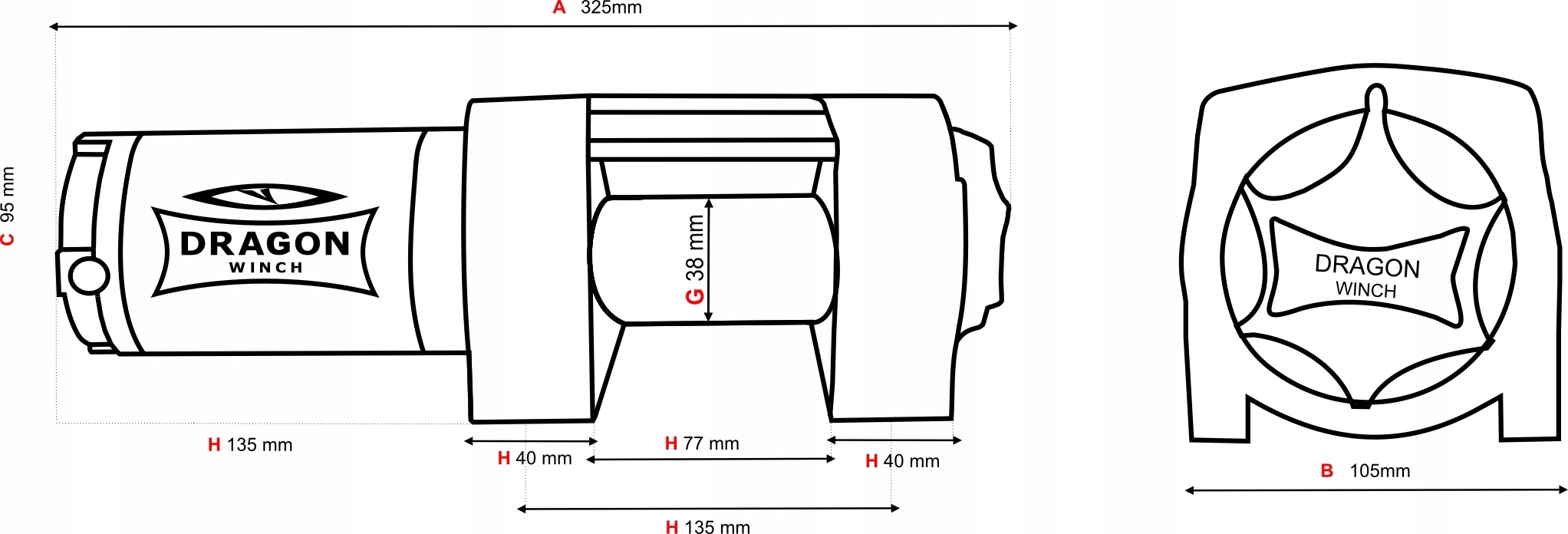 - Розміри лебідки (ДxШxВ): 320 мм x 100 мм x 100 мм