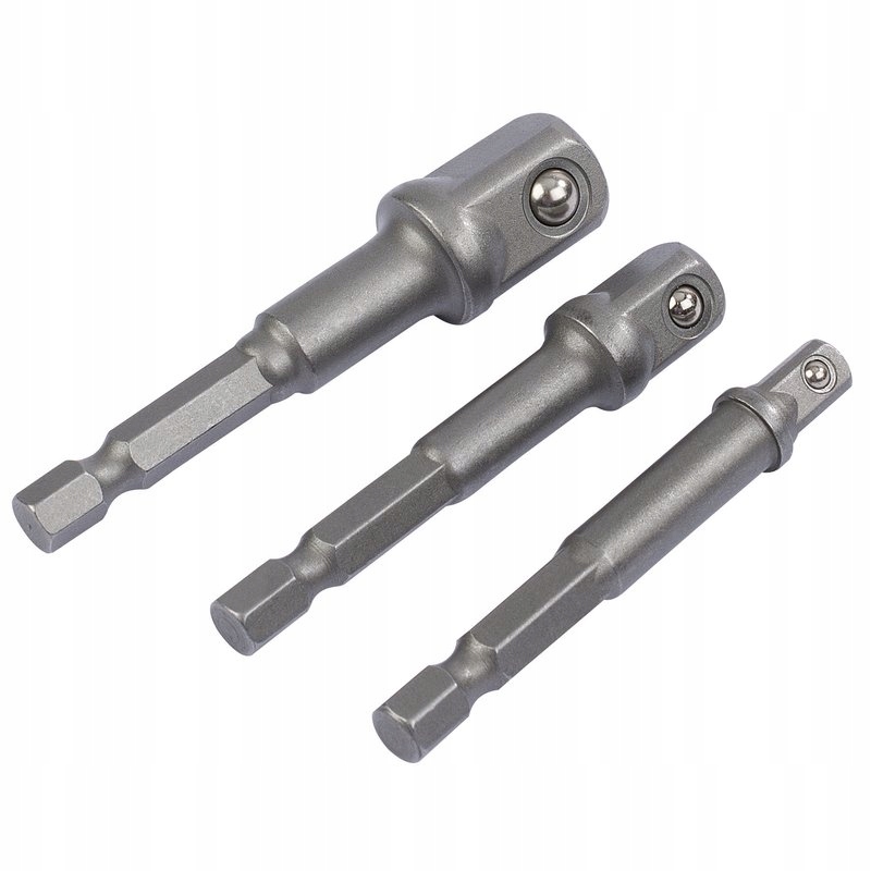Призначений для використання з будь-яким приводом 1/4", тобто ручним, електричним або пневматичним, для приводу розеток 1/4", 3/8" і 1/2". У набір входять такі кріплення: 1/4" шестигранник x 1/4" квадрат, 1/4" шестигранник x 3/8" квадрат і 1/4" шестигранник x 1/2" квадрат. Виготовлений із загартованої хромованадієвої сталі, хромований. Кожна насадка має підпружинену кульку, яка надійно утримує насадку. Товар запакований.